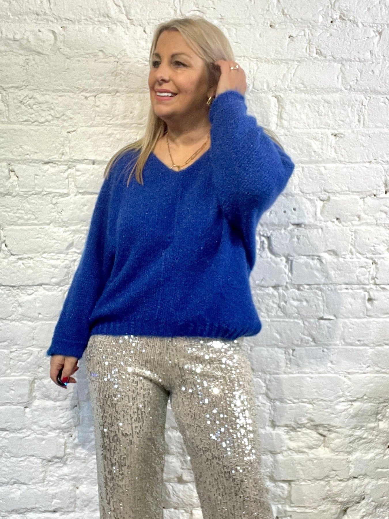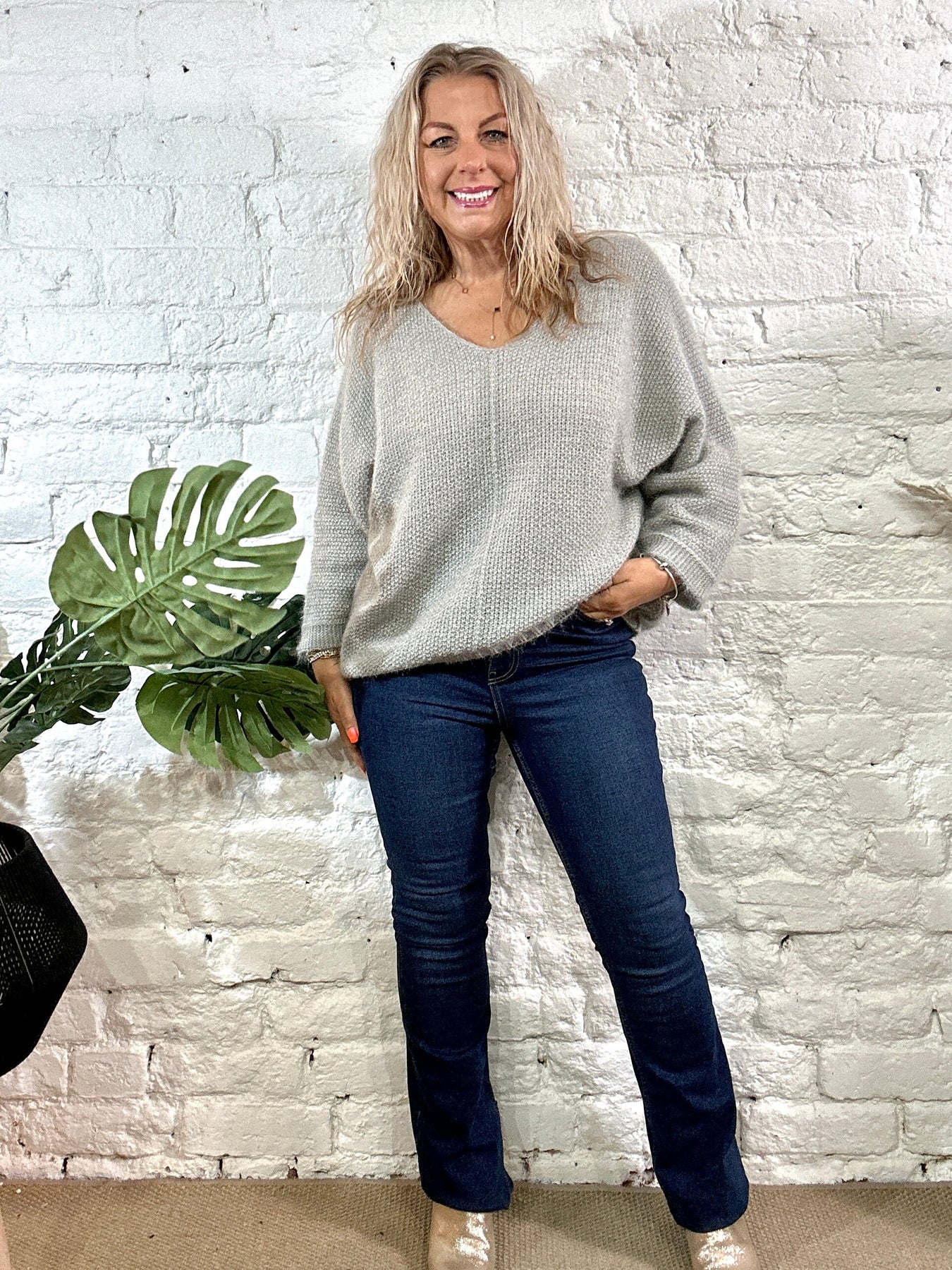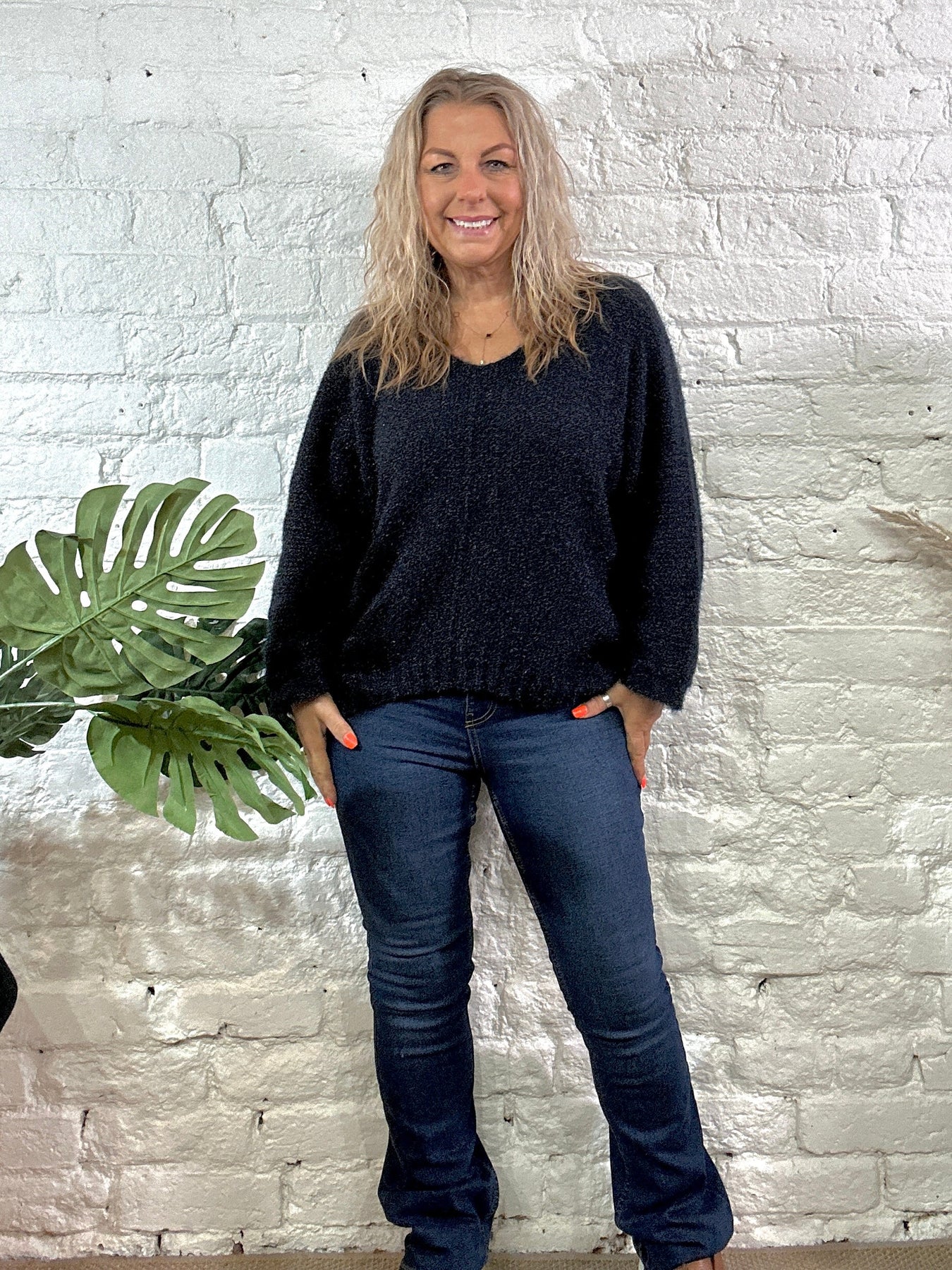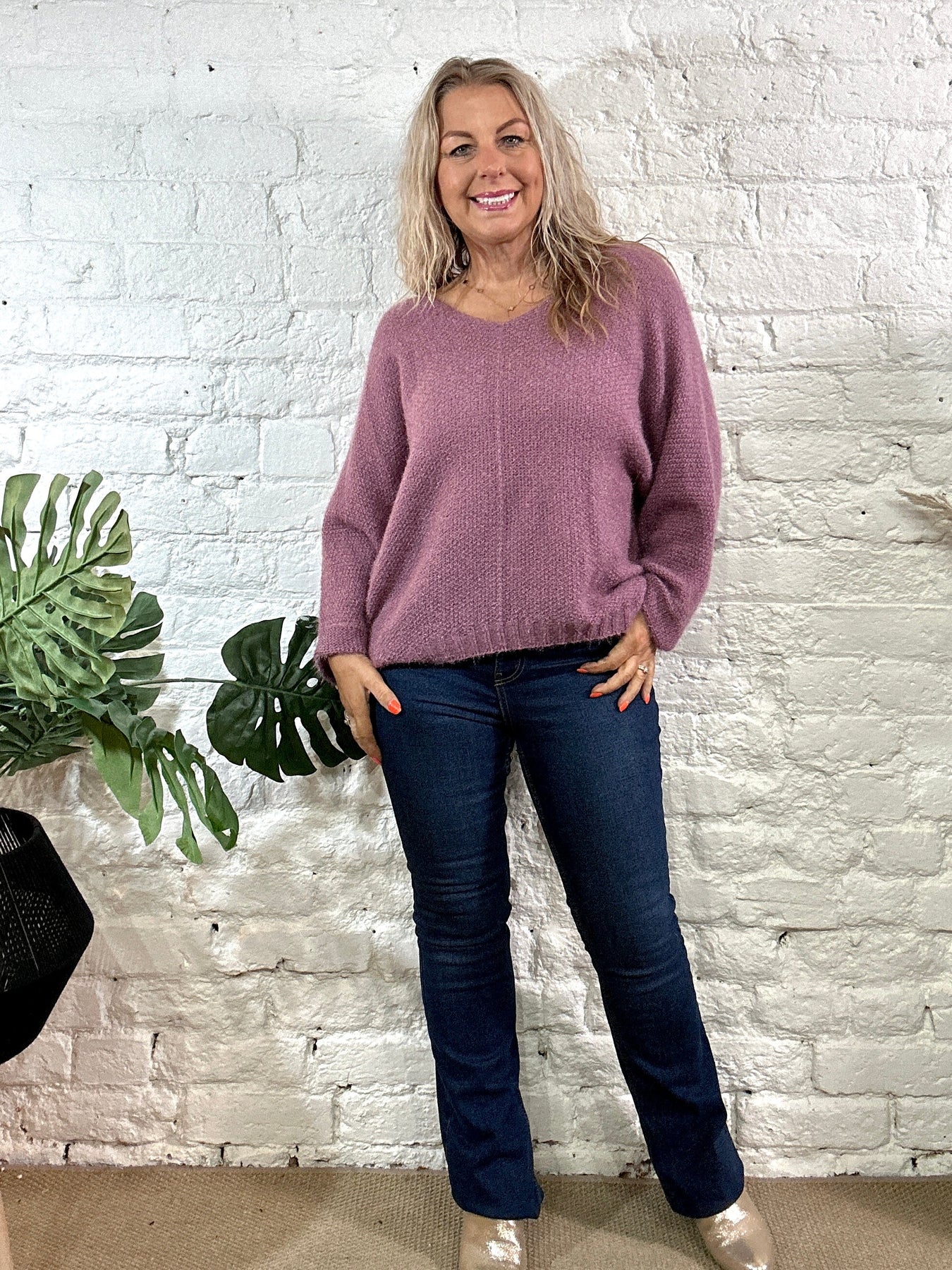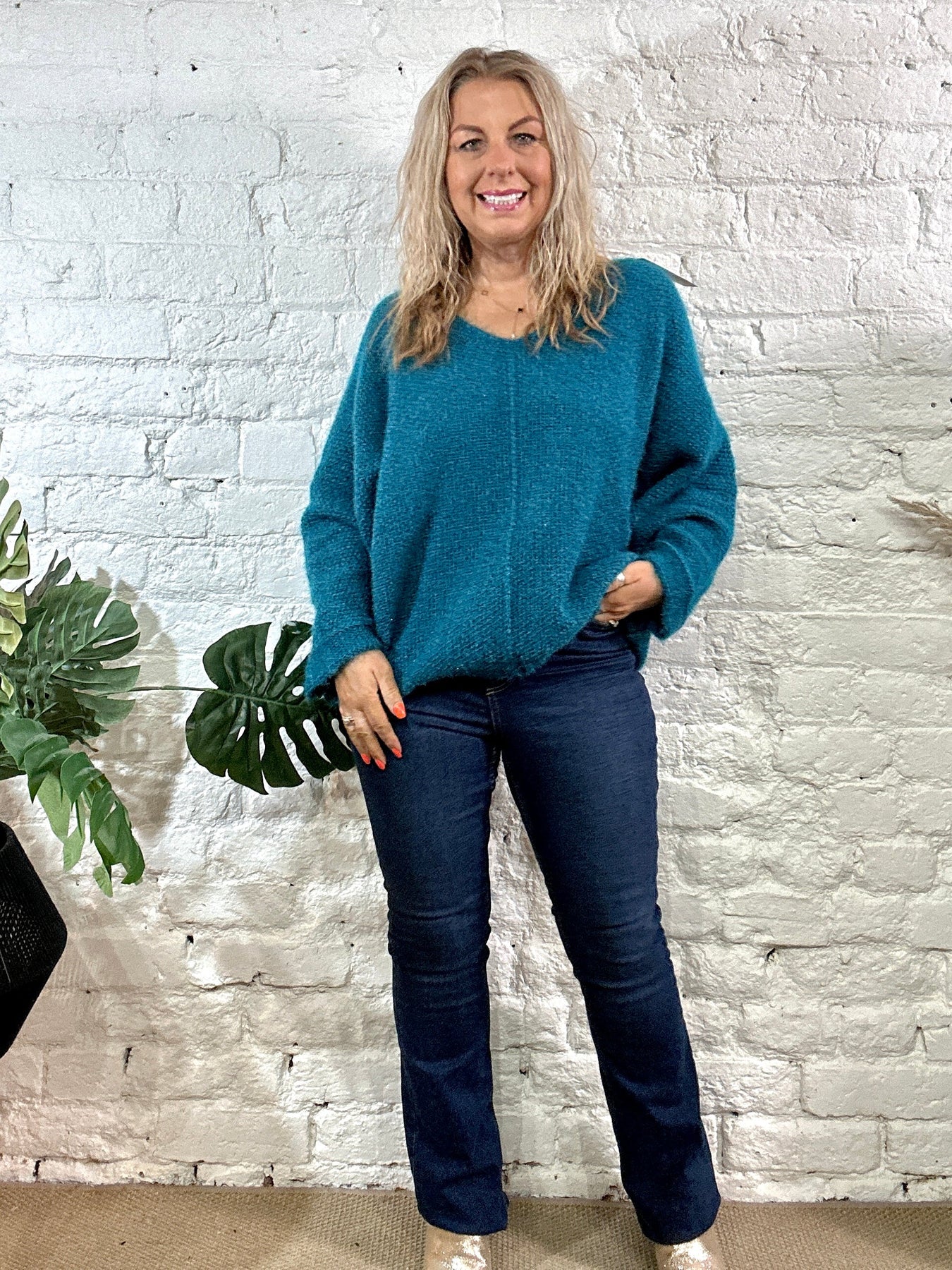 The Noel Super Soft fluffy Jumper. Crop Sleeve slight v neck