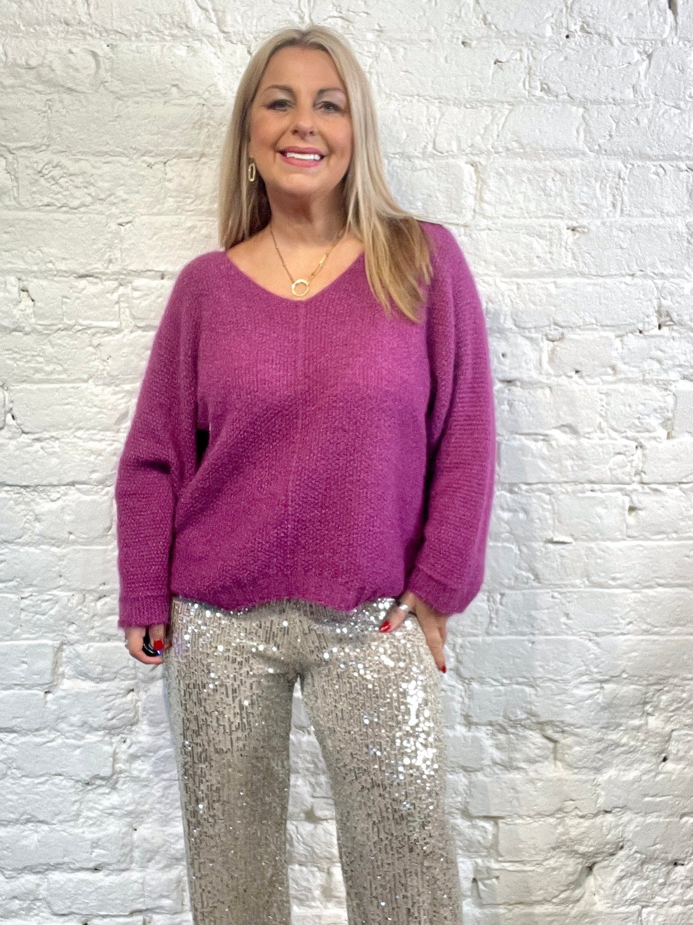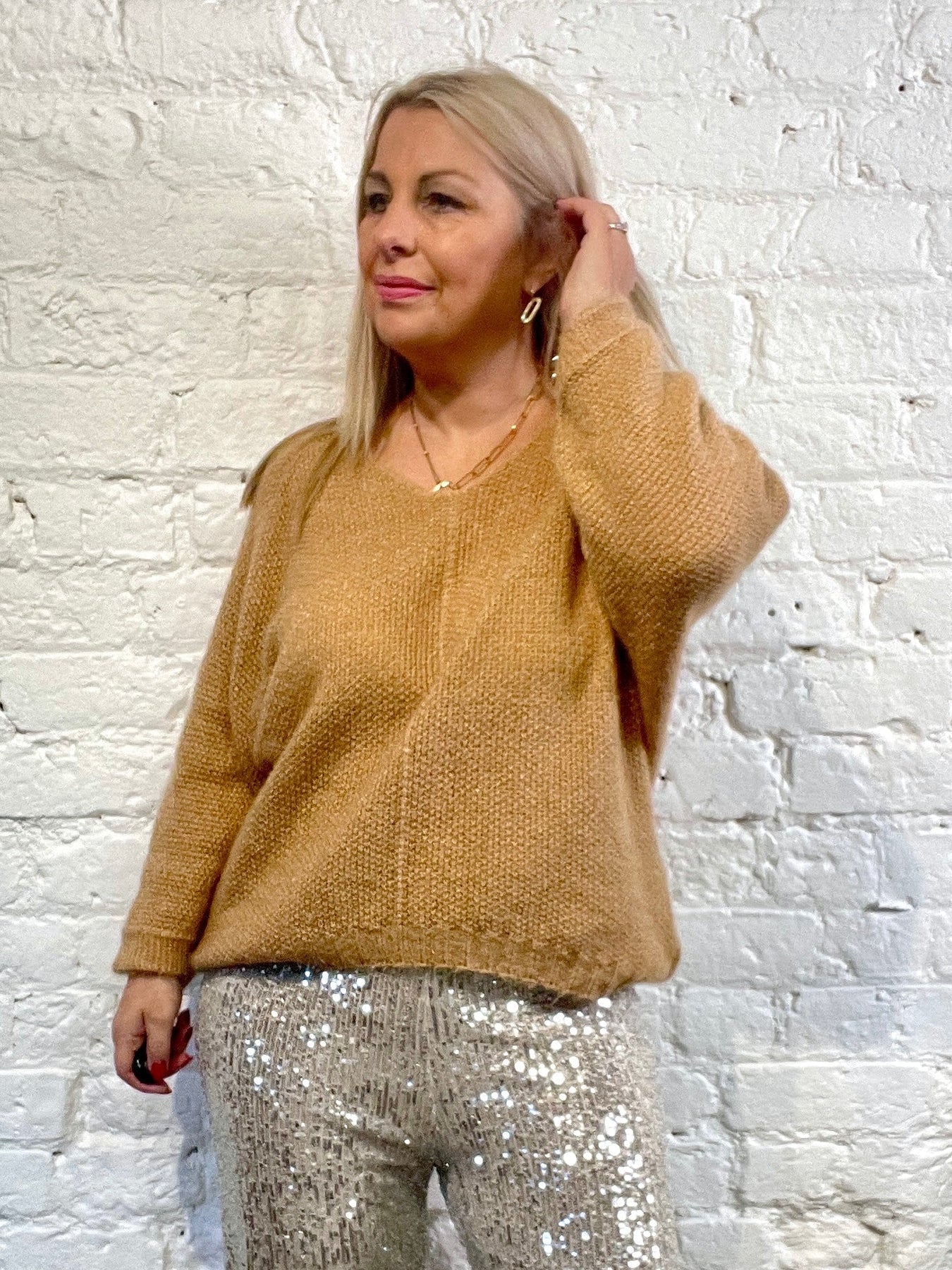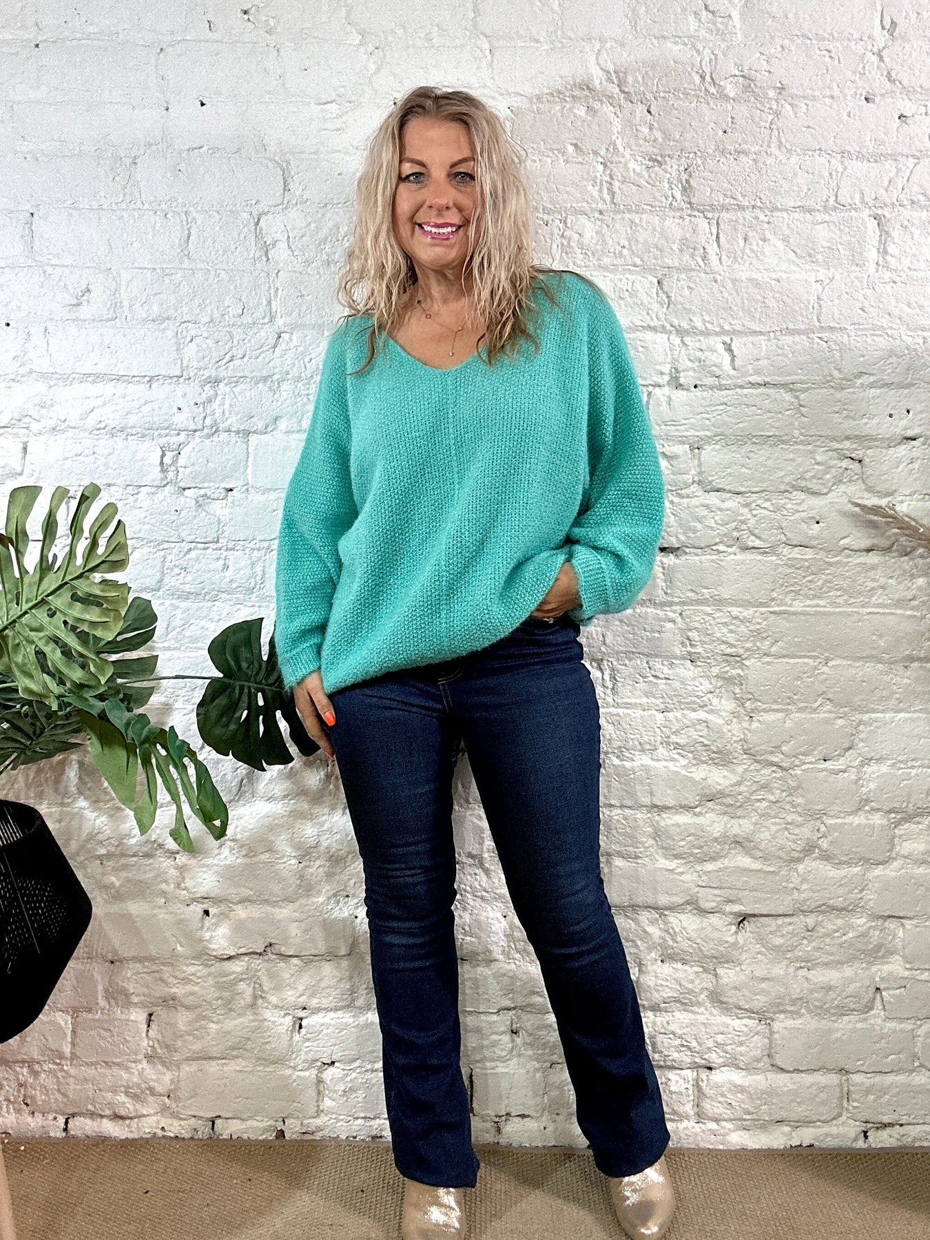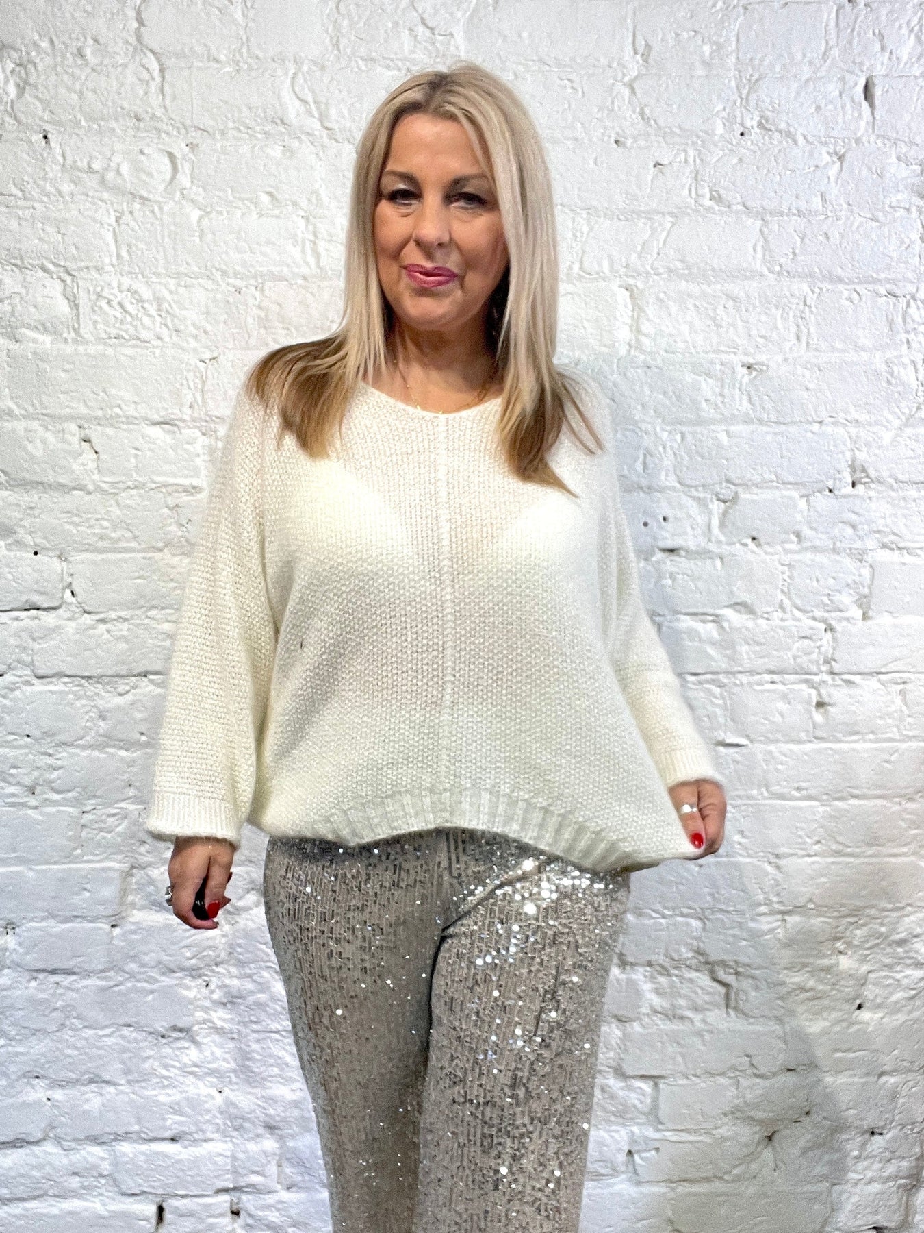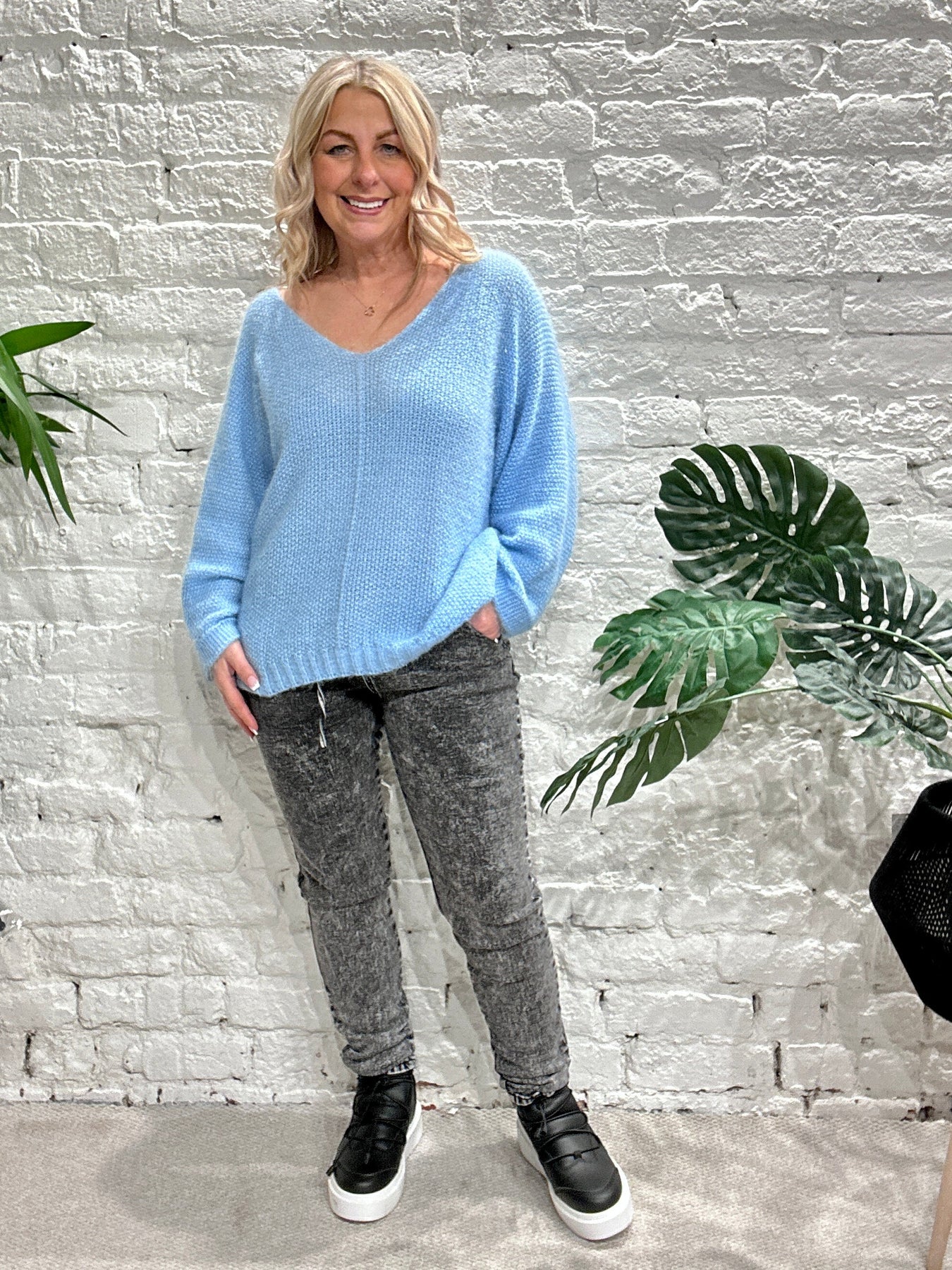The Noel Super Soft fluffy Jumper. Crop Sleeve slight v neck
