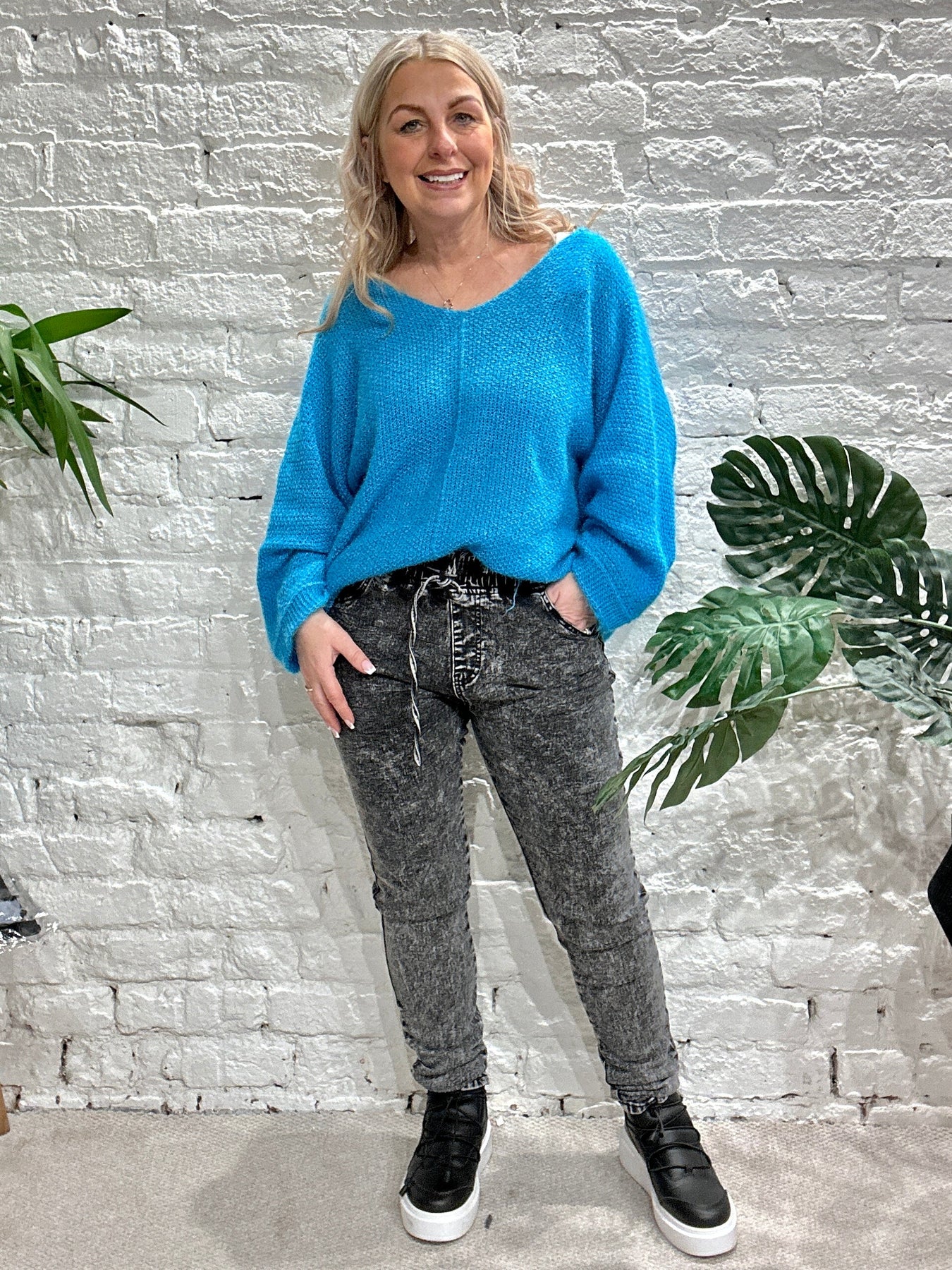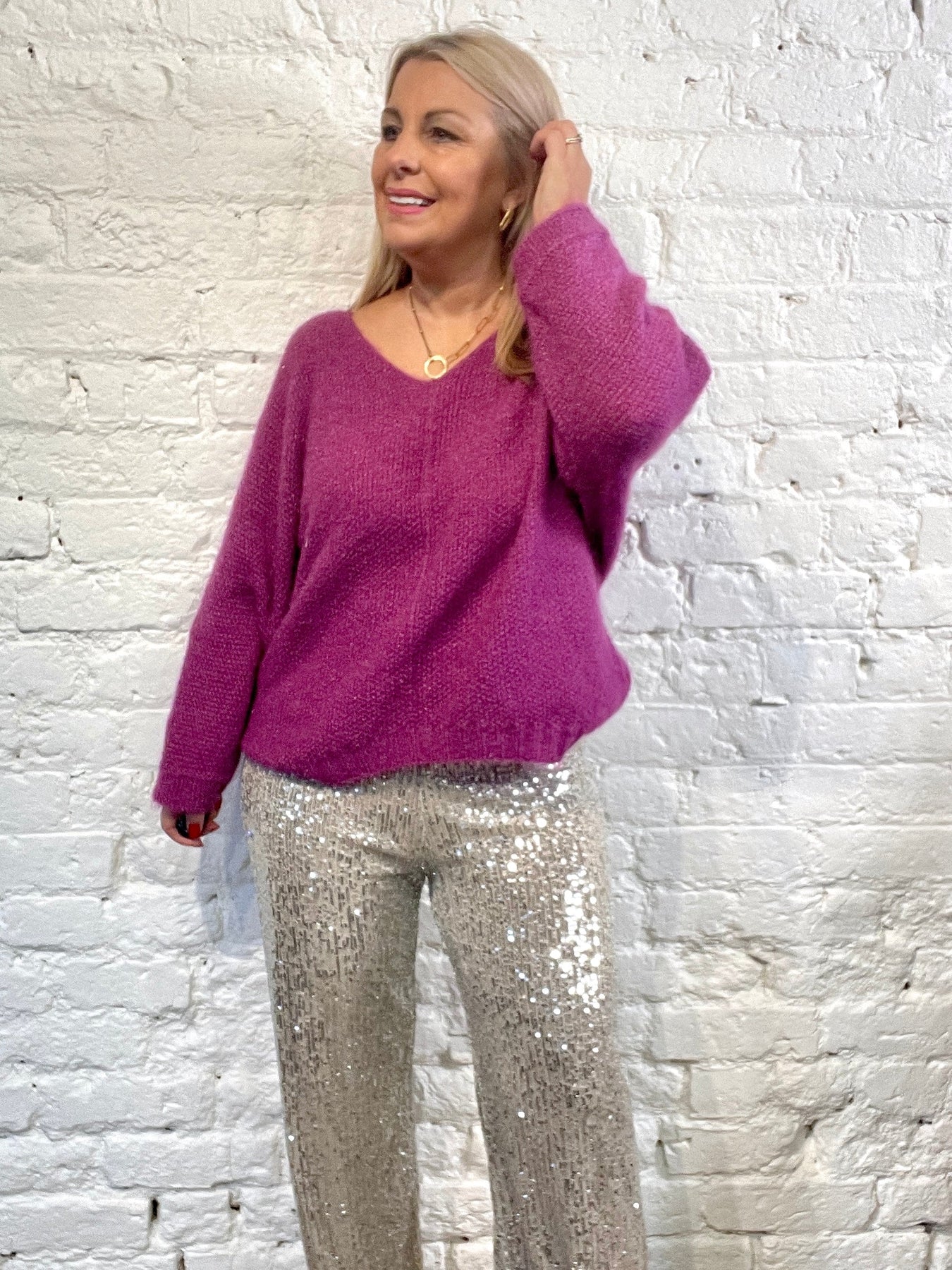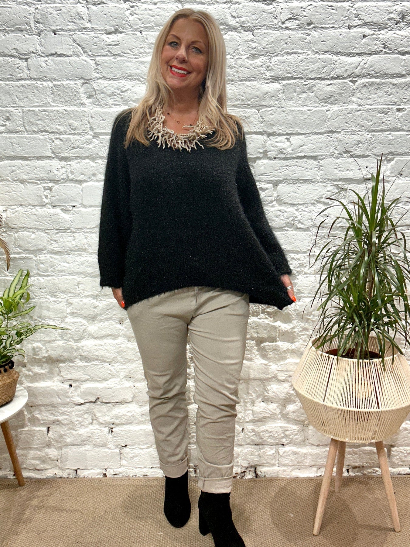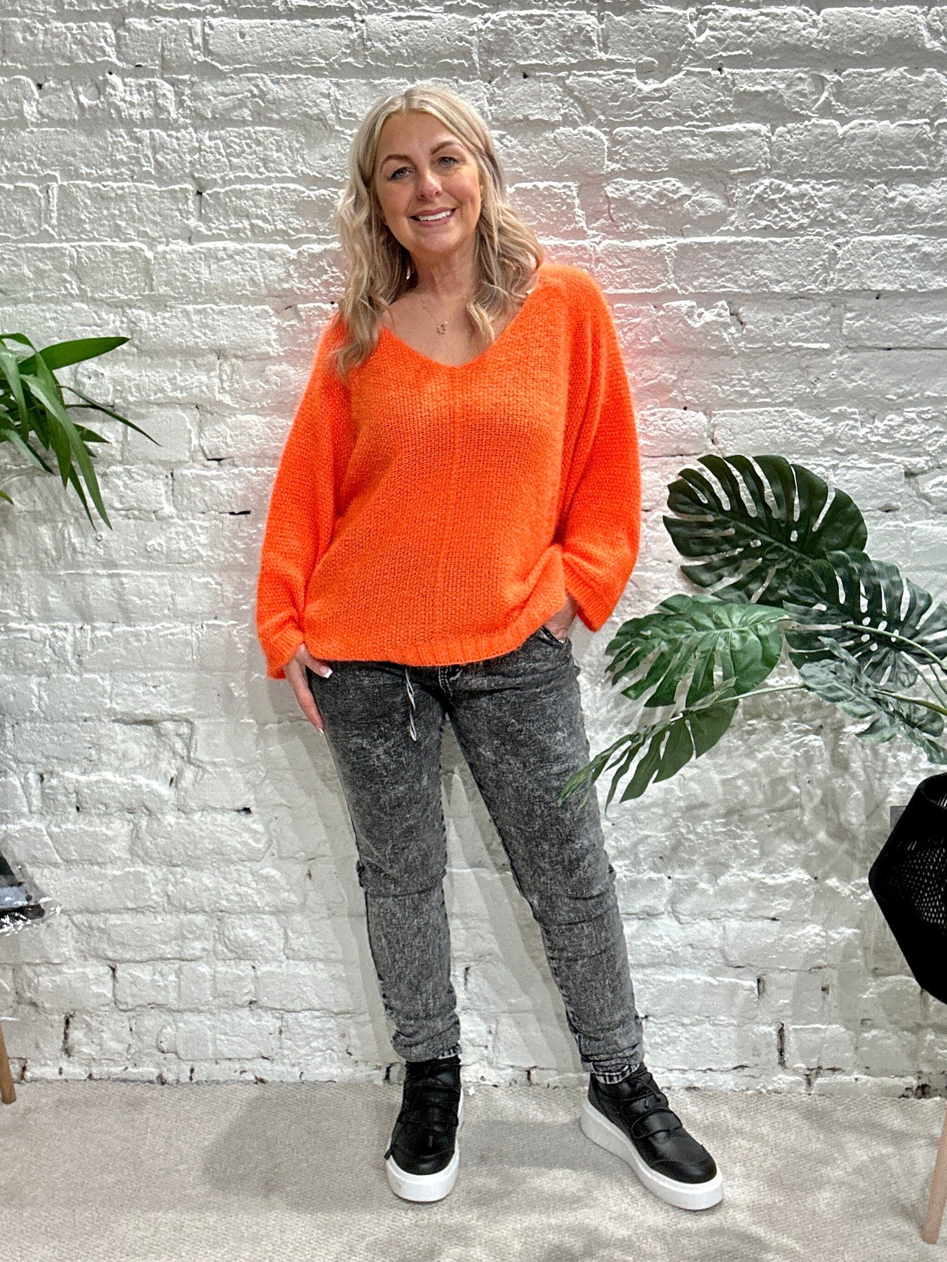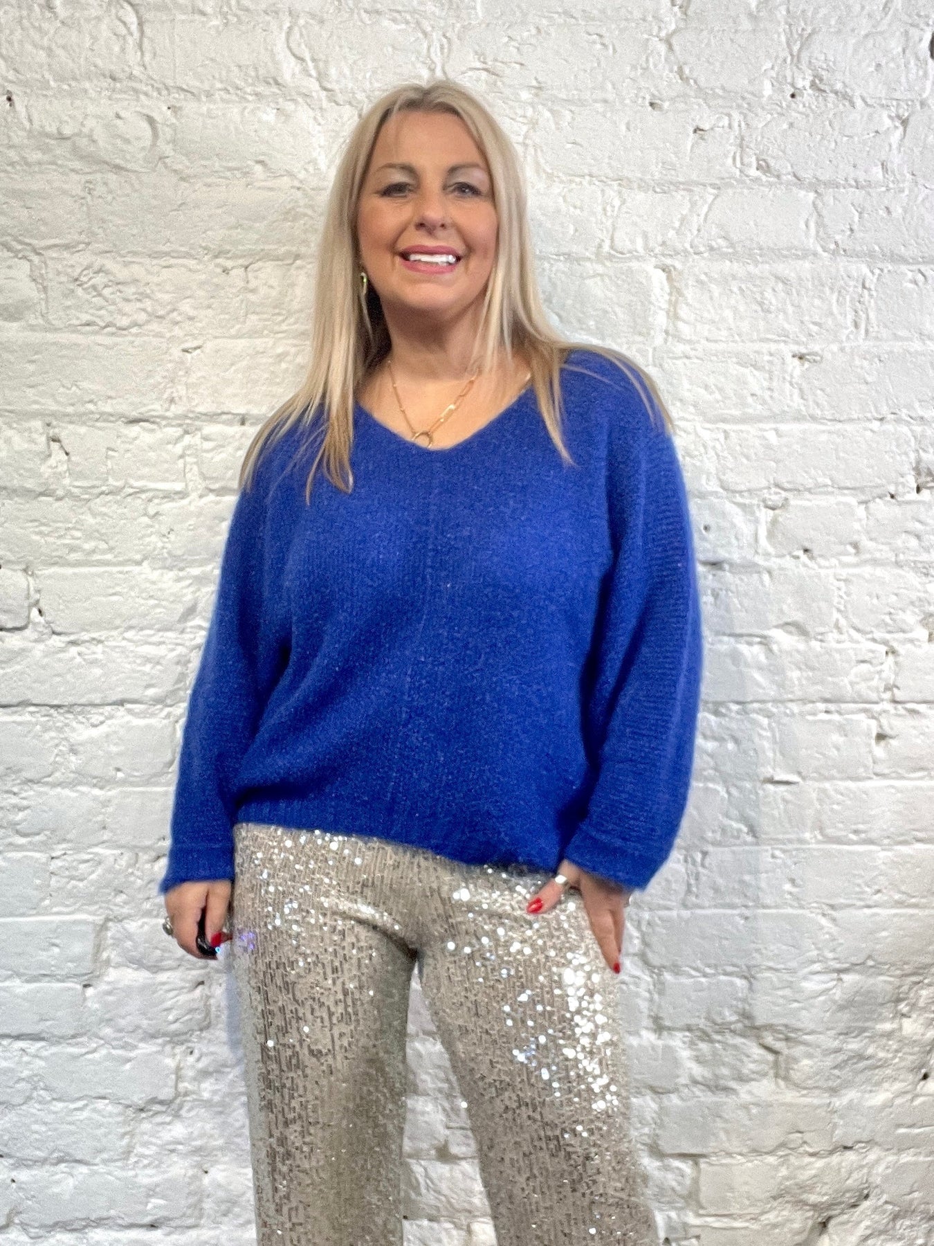 The Noel Super Soft fluffy Jumper. Crop Sleeve slight v neck