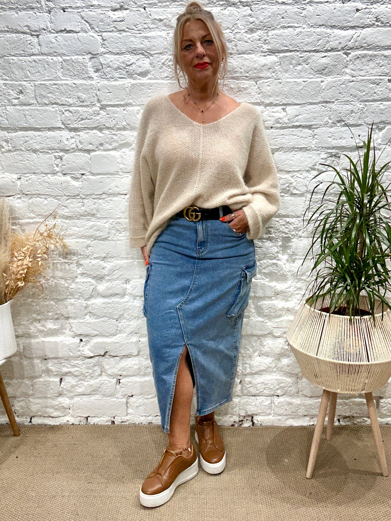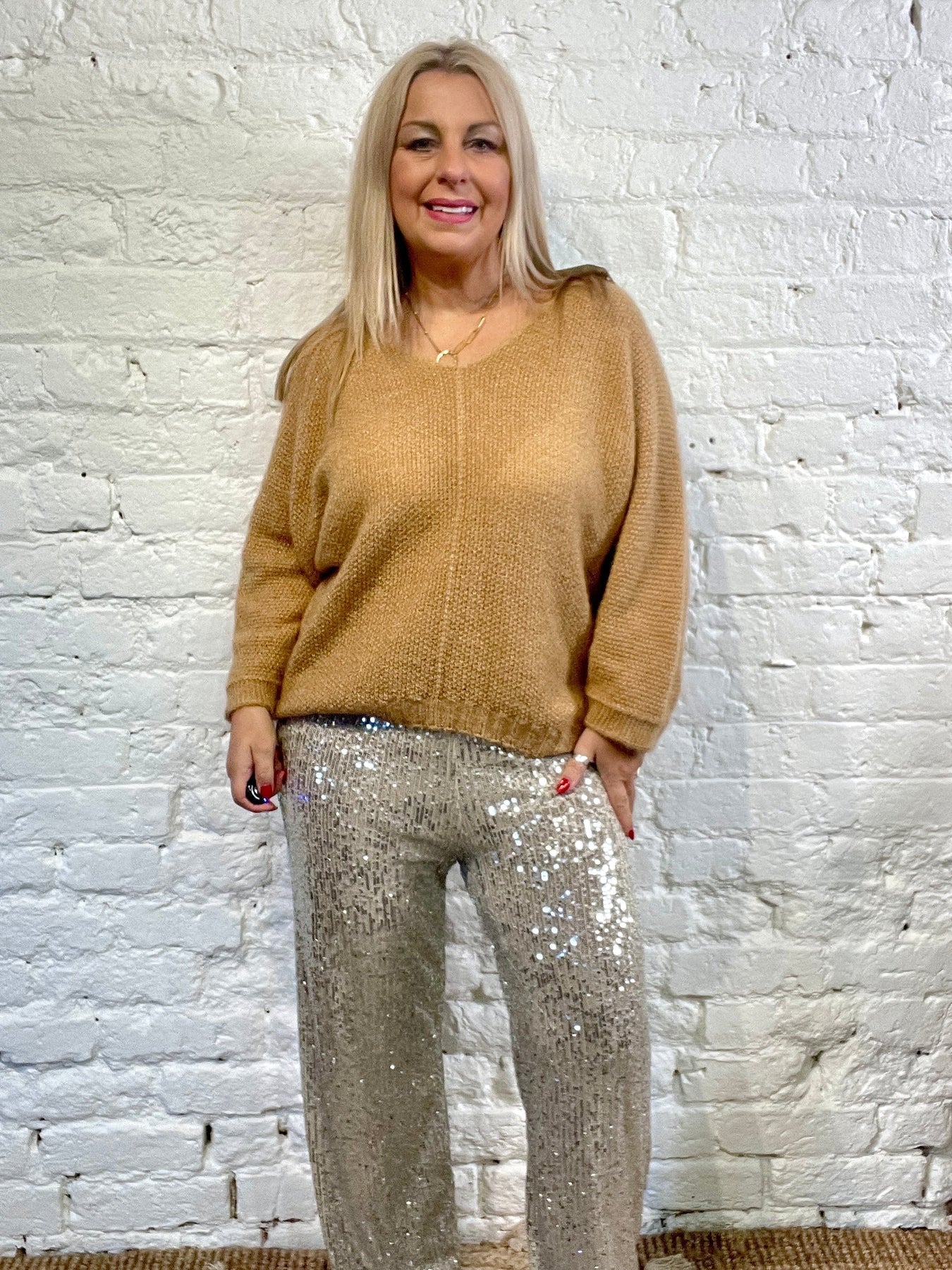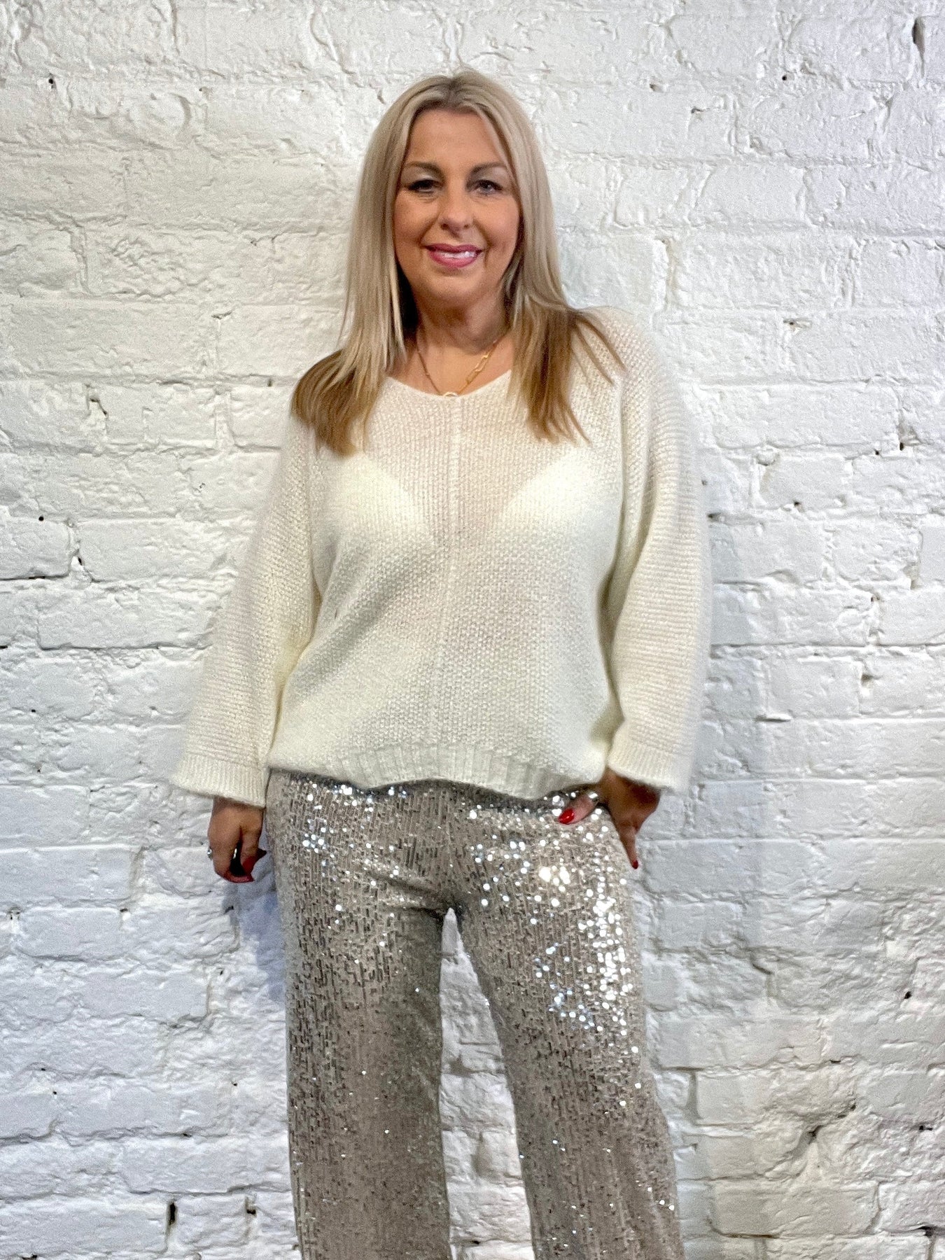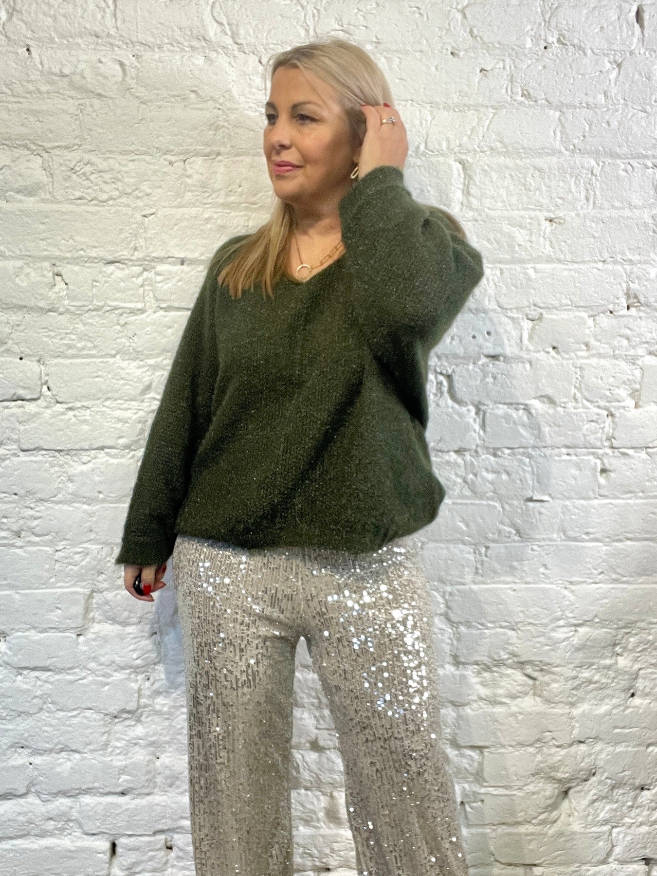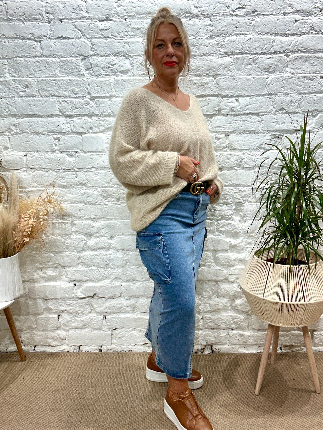 The Noel Super Soft fluffy Jumper. Crop Sleeve slight v neck