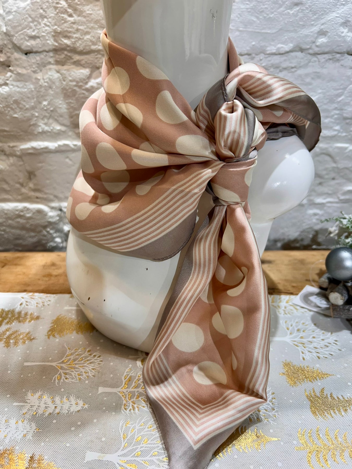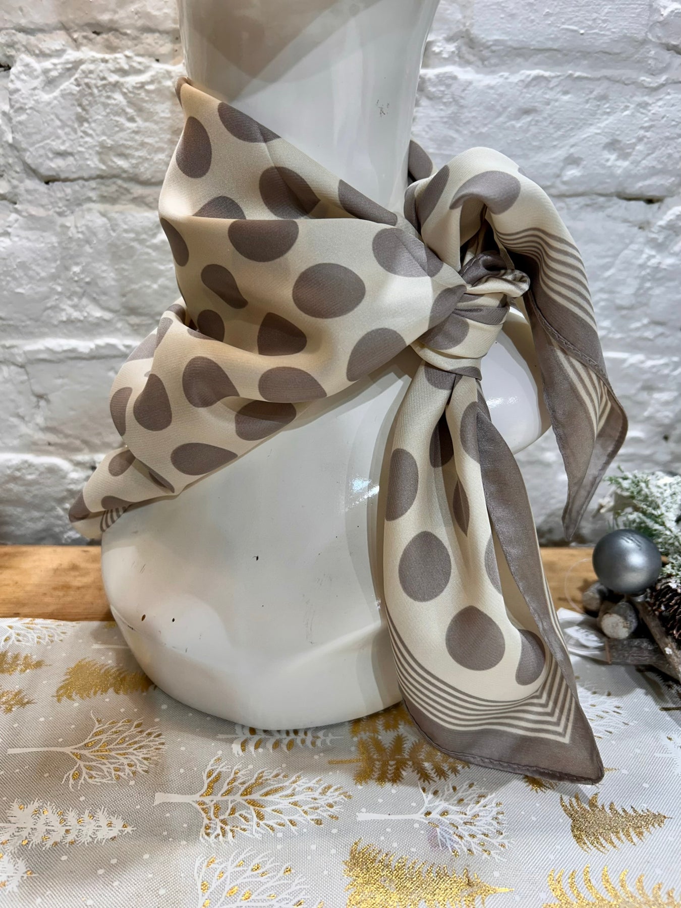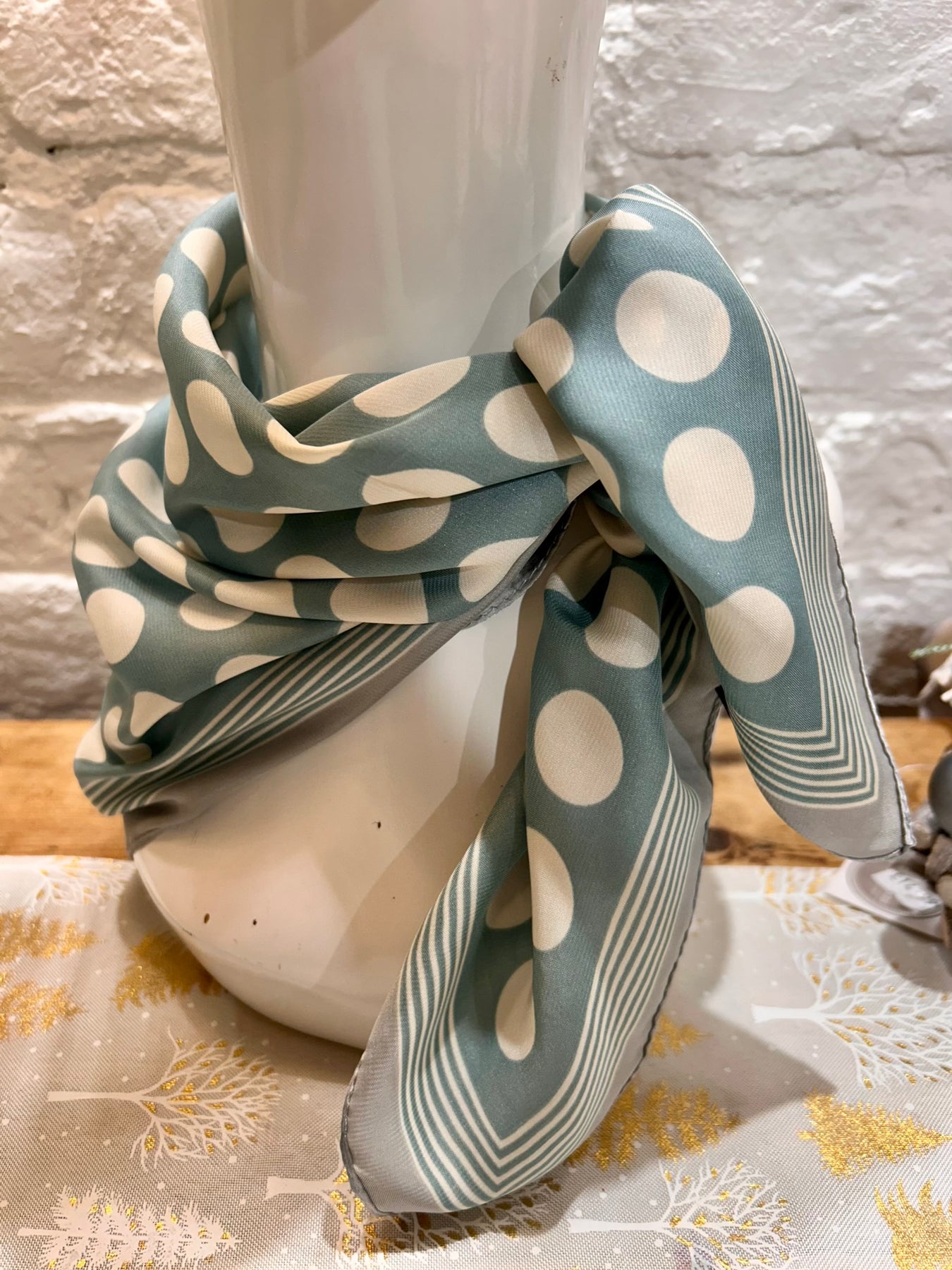 Small Satin Style Handkerchief Square scarf in a polka dot pattern
