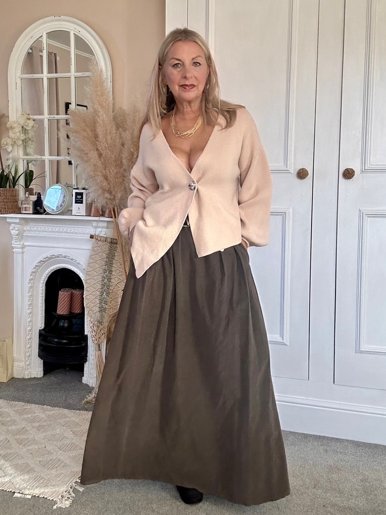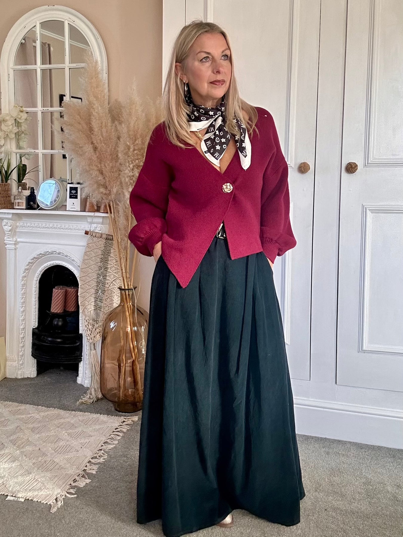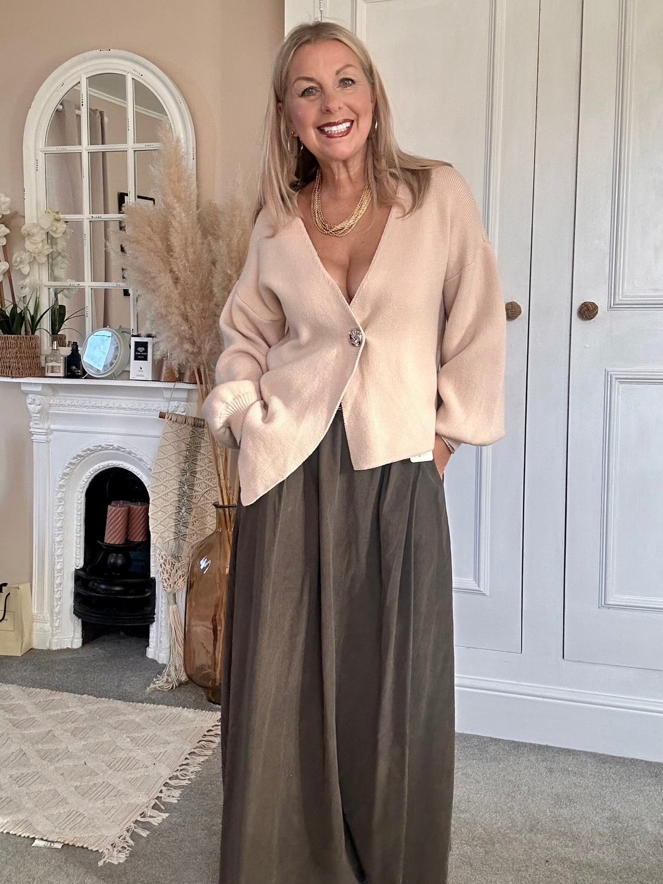 Worn with one button cardigan