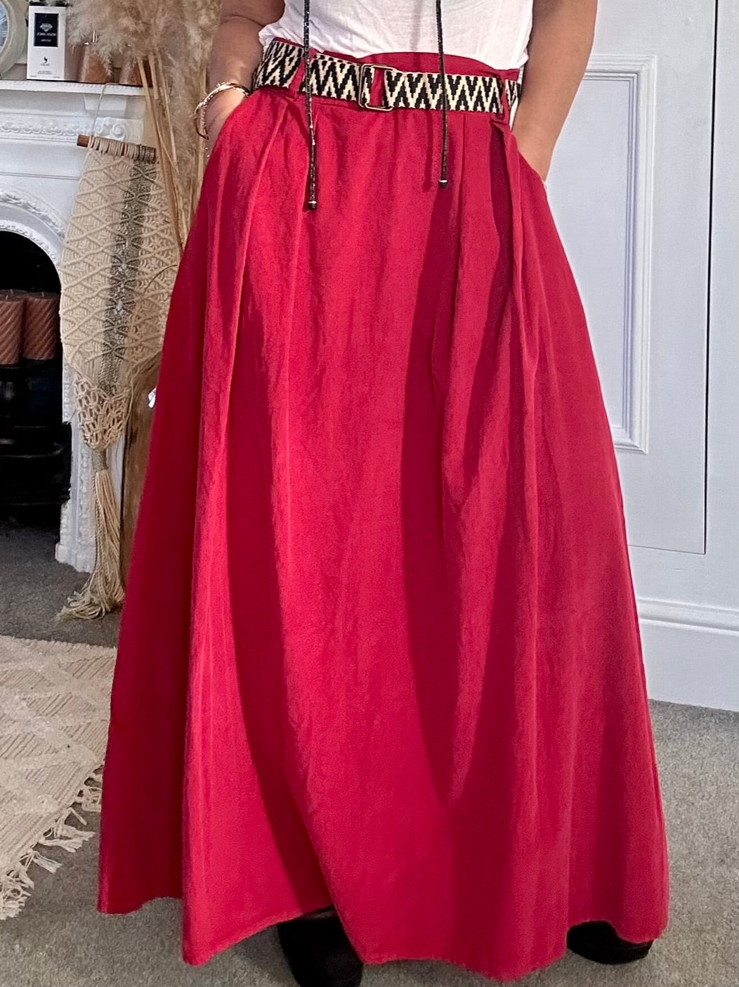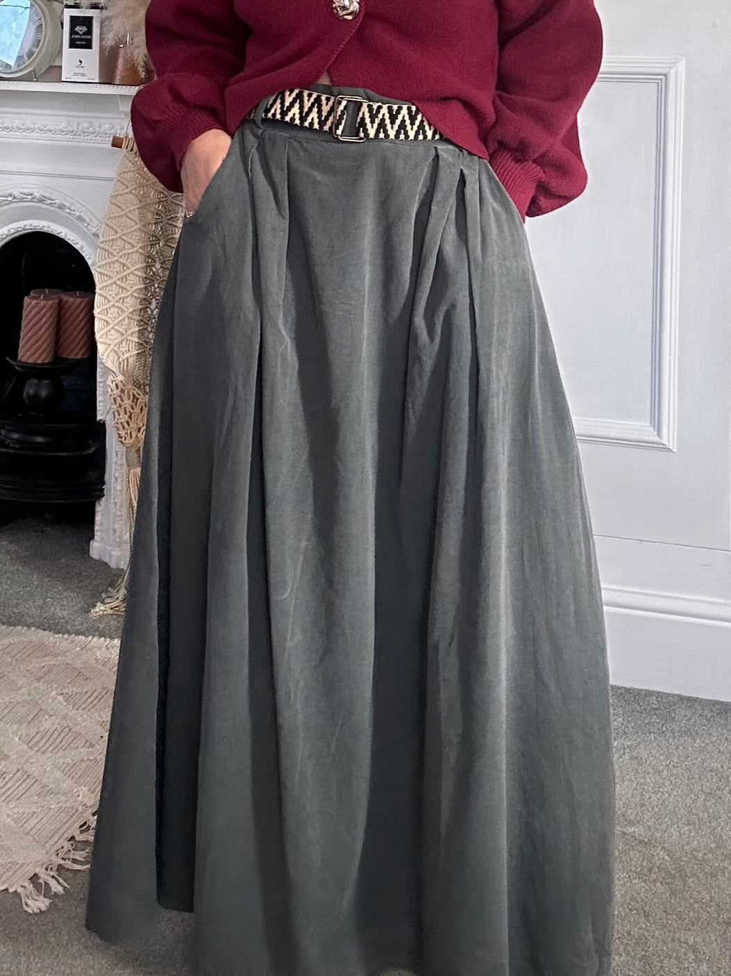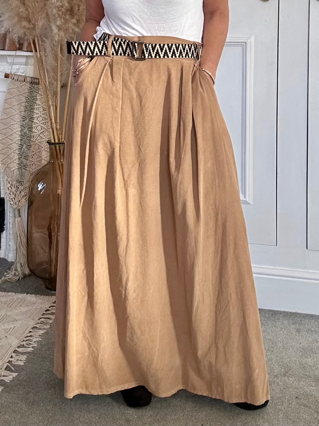The PinCord Relaxed Will Long Maxi Skirt With Belt And Pockets