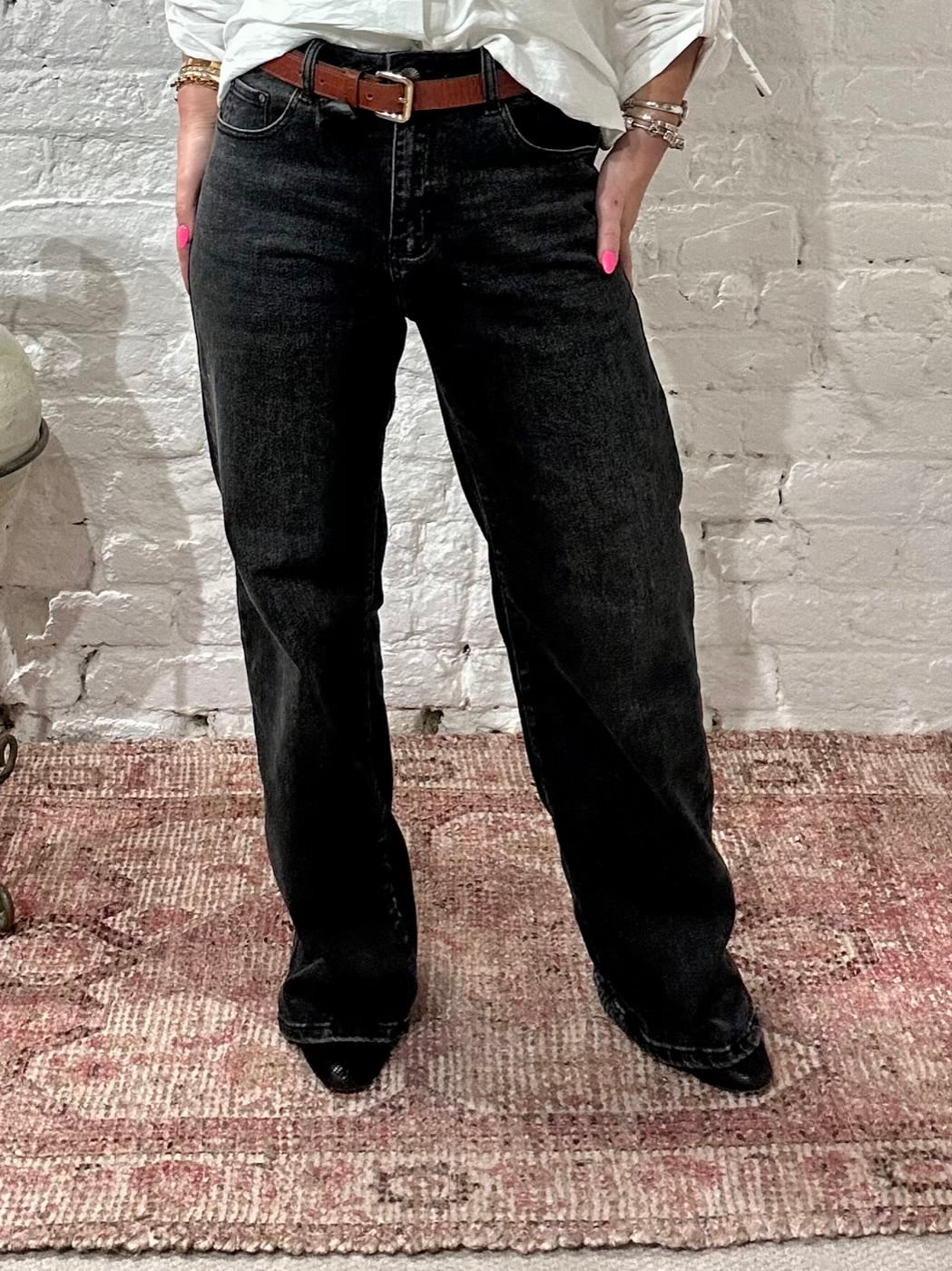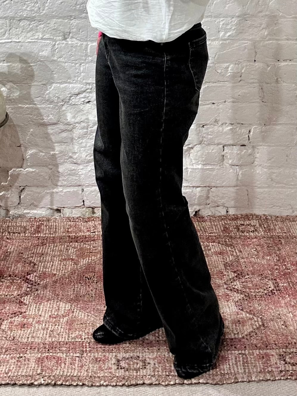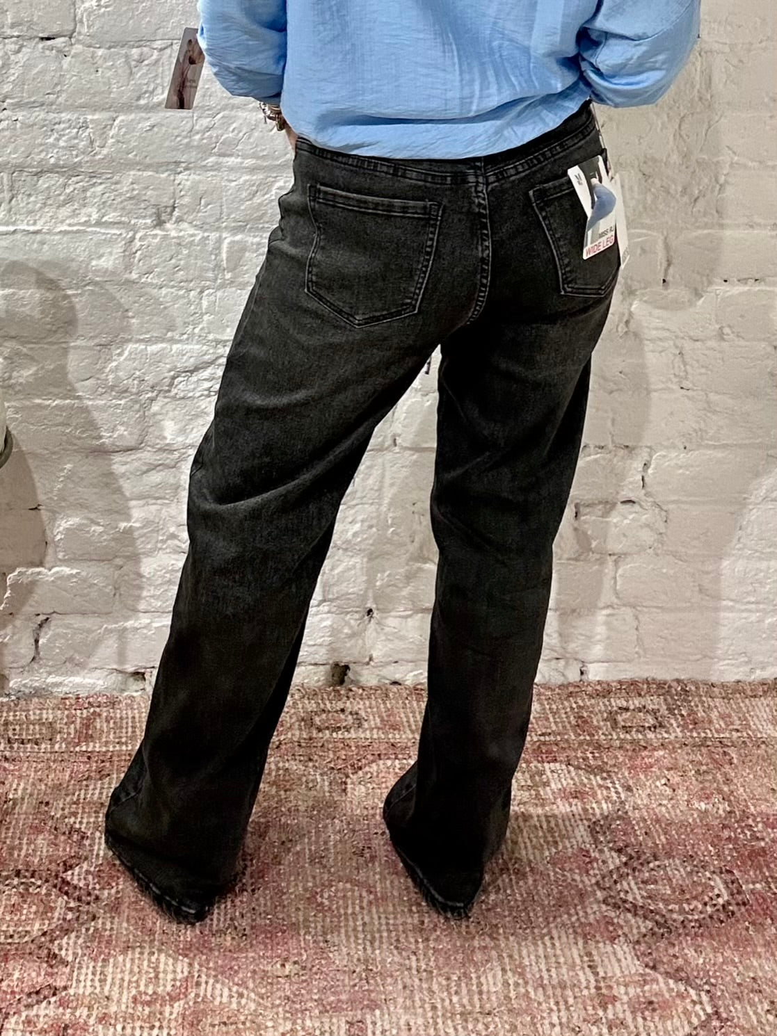 Miss RJ Washed Black Fashion Wide Leg Jeans