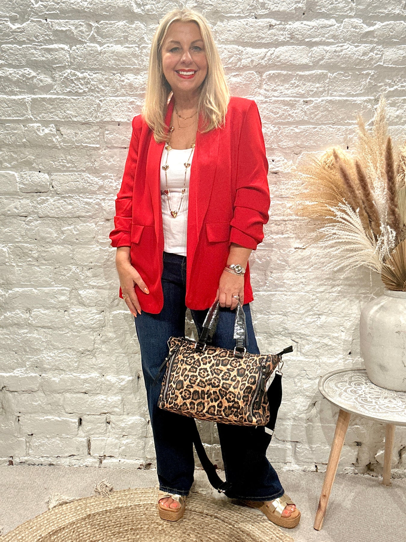 Nadine plain Single Breast red Blazer  Fully lined With Gathered Arms