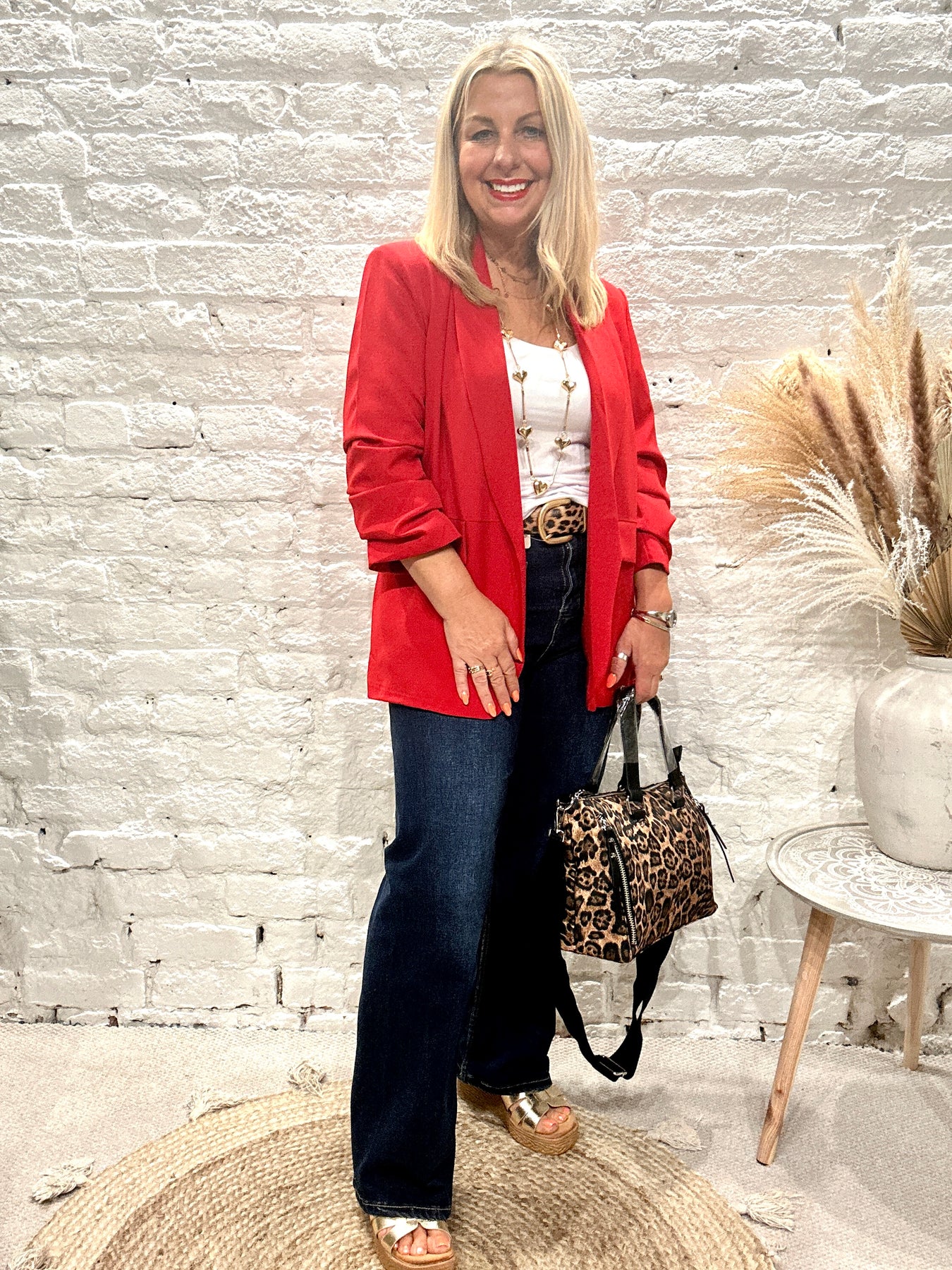 Nadine plain Single Breast red Blazer Fully lined With Gathered Arms