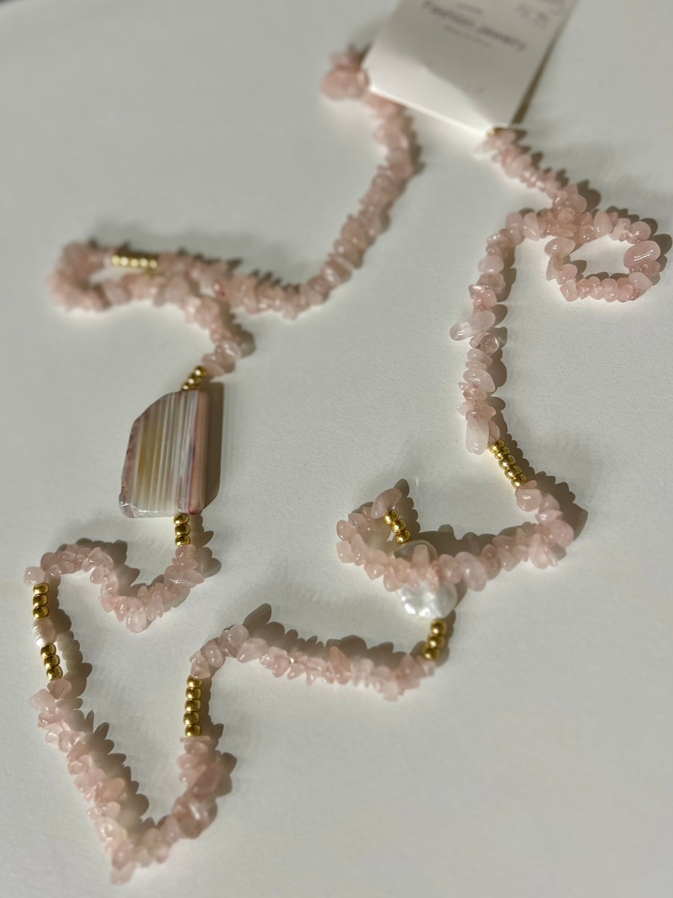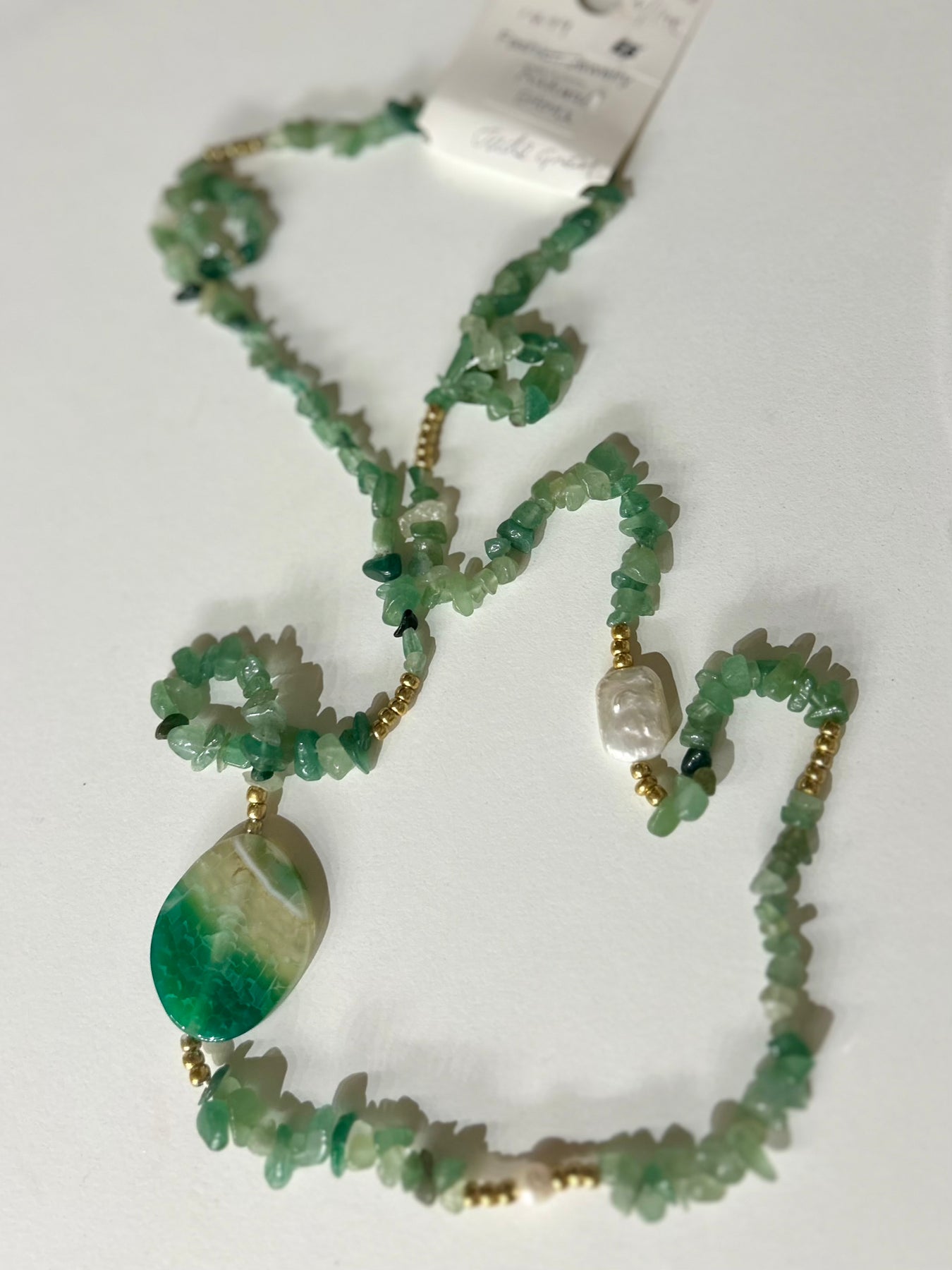 Semi Precious Cold Stone Chip Beaded Long Necklace
