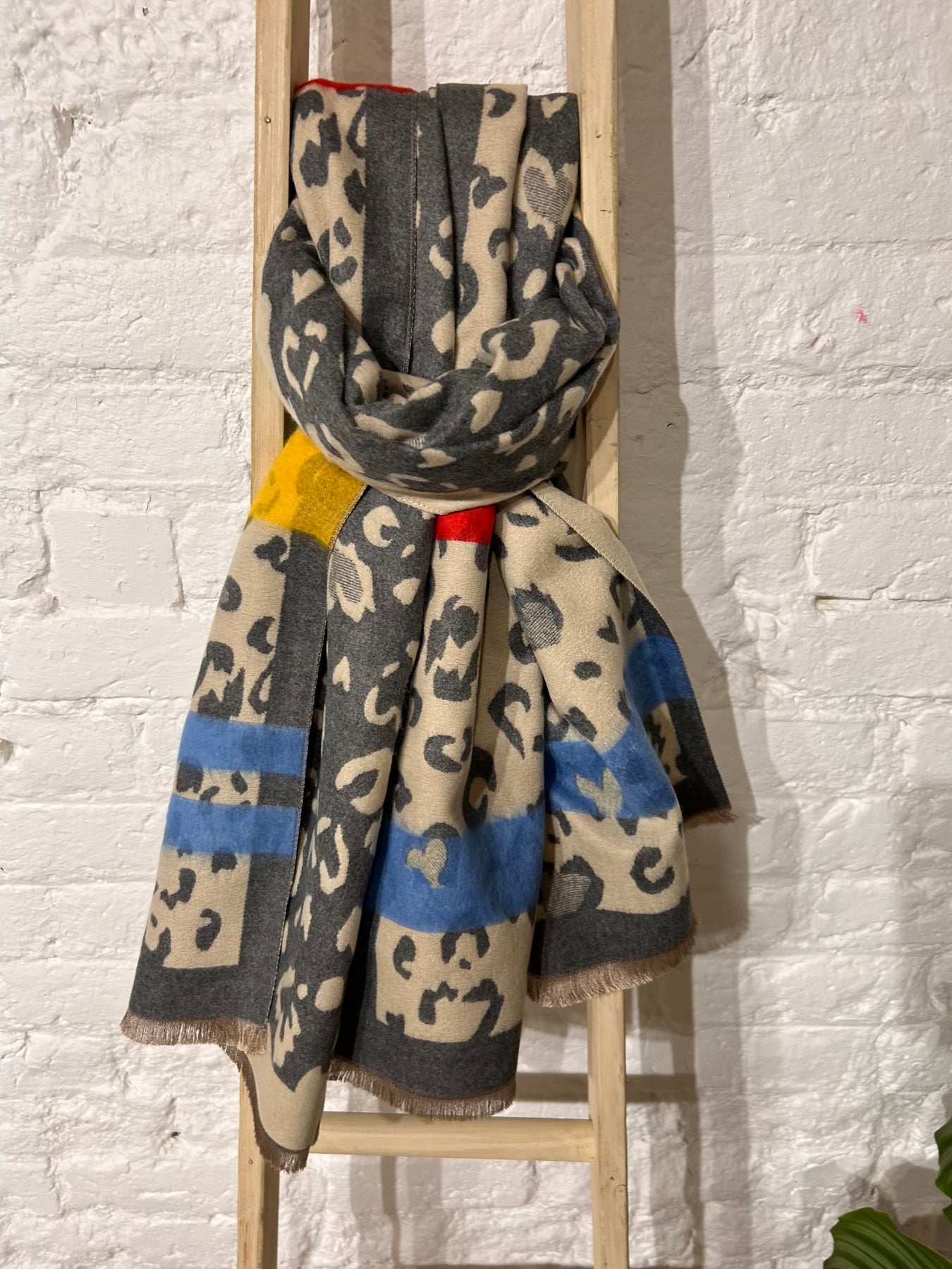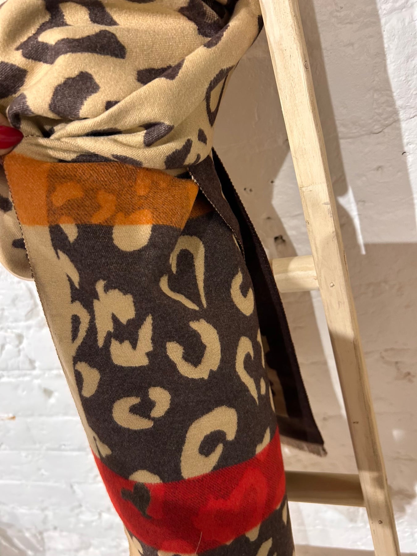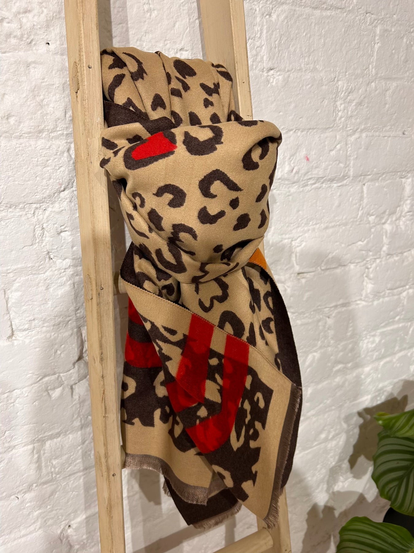 Super Smooth Leopard Print Oversized Winter Scarf. Reversible with a colourful reverse side