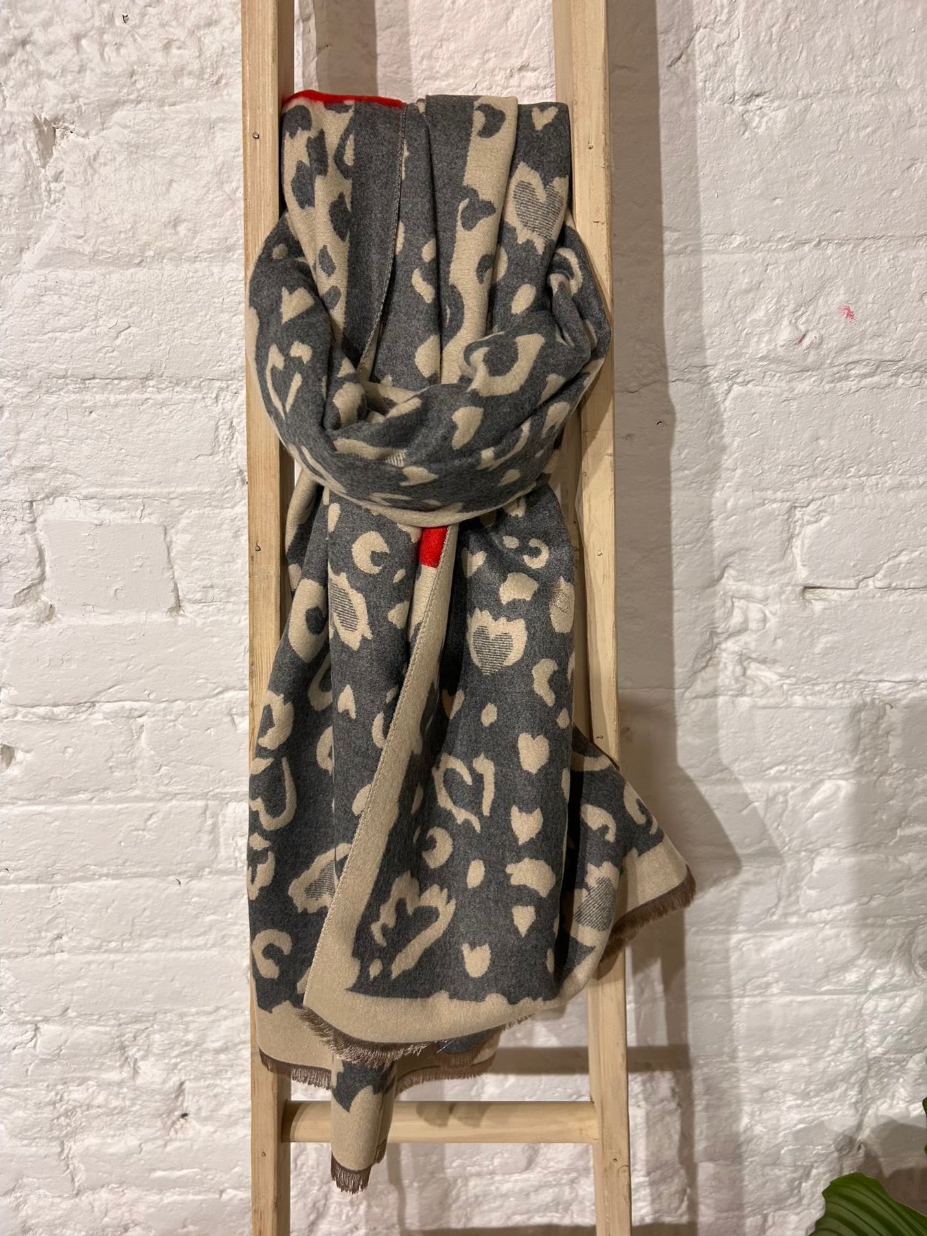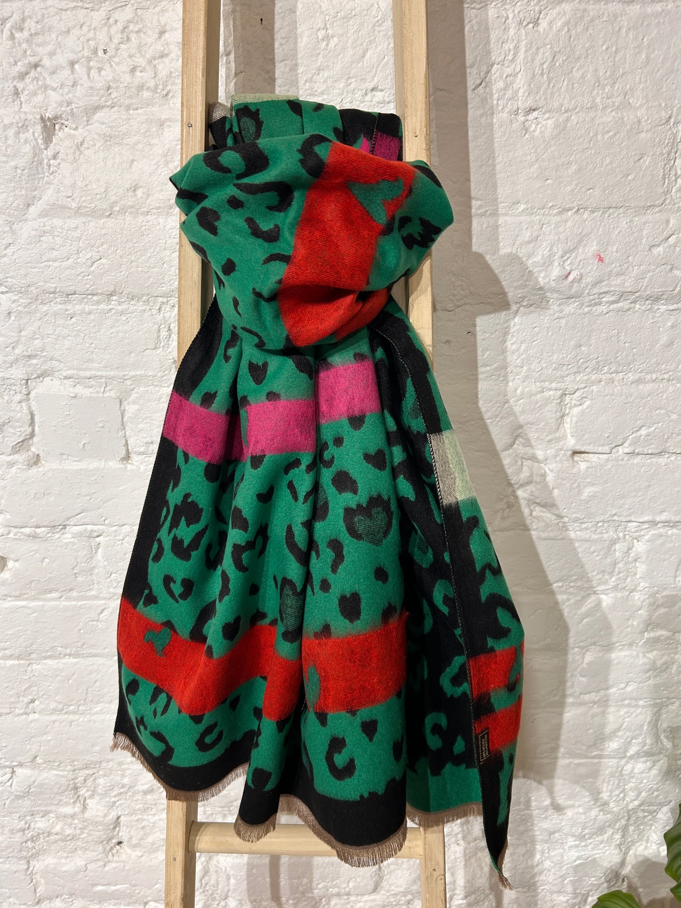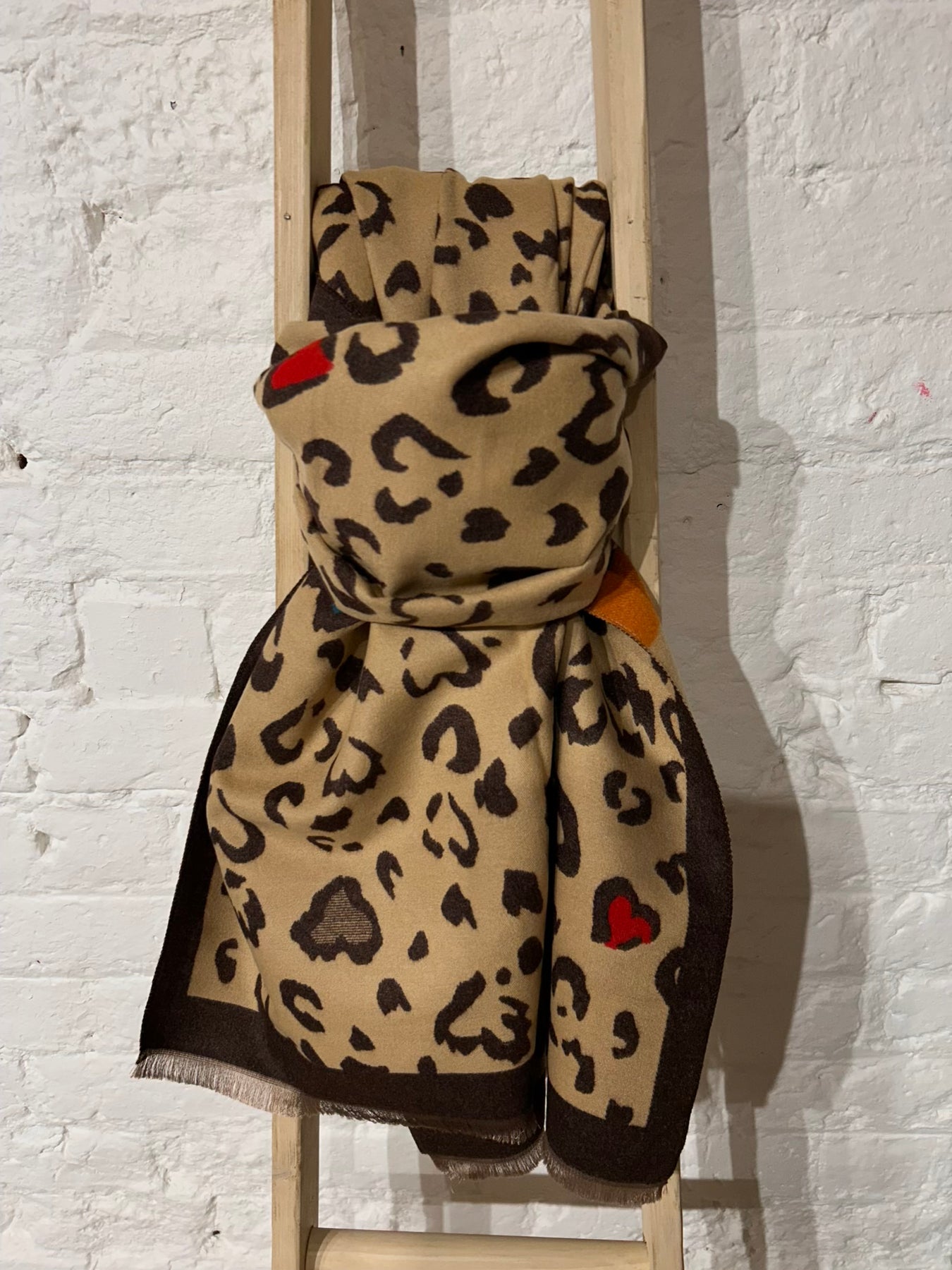 Super Smooth Leopard Print Oversized Winter Scarf. Reversible with a colourful reverse side