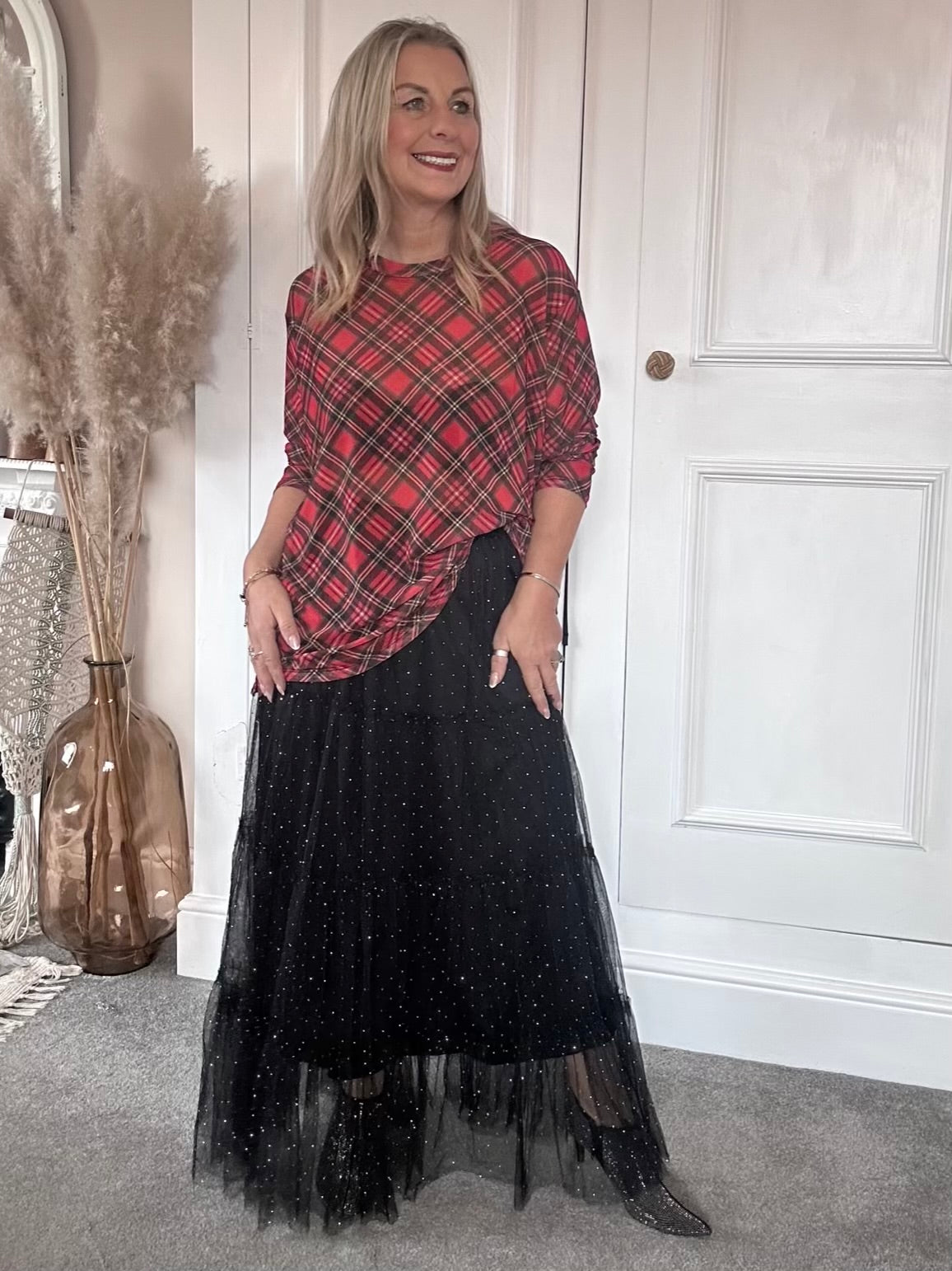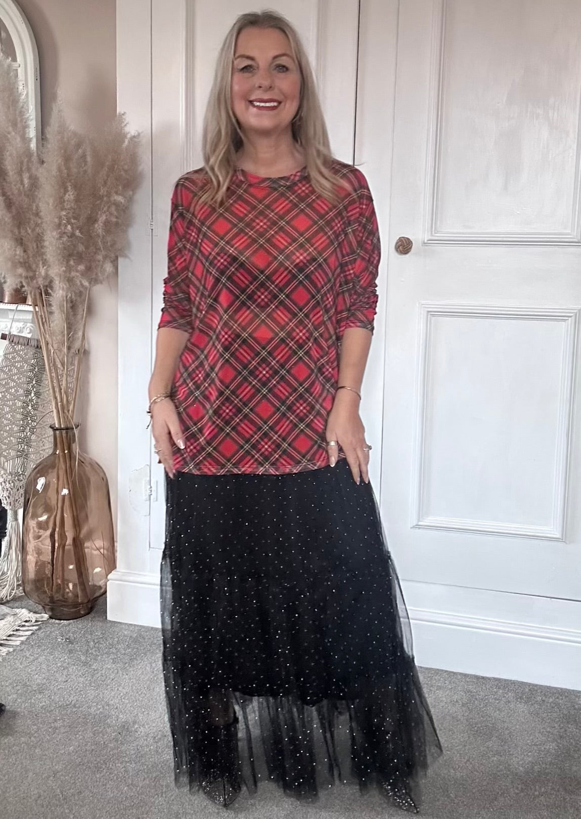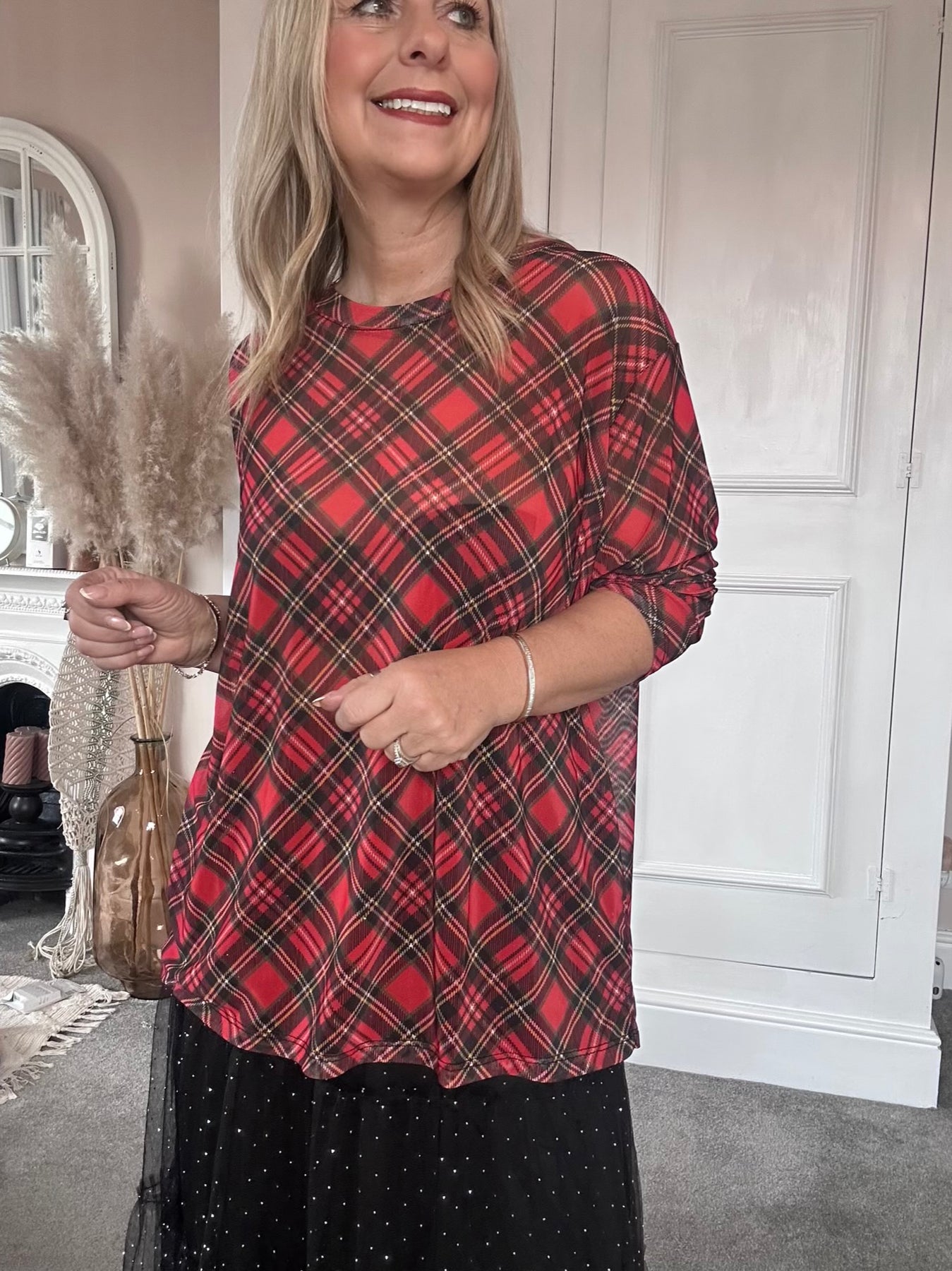 A beautifully soft, lightweight check top designed with a flattering swing silhouette. The relaxed drape offers easy movement while the classic pattern adds a touch of timeless charm. Perfect for pairing with skirts or trousers for a stylish, effortless look from day to evening.