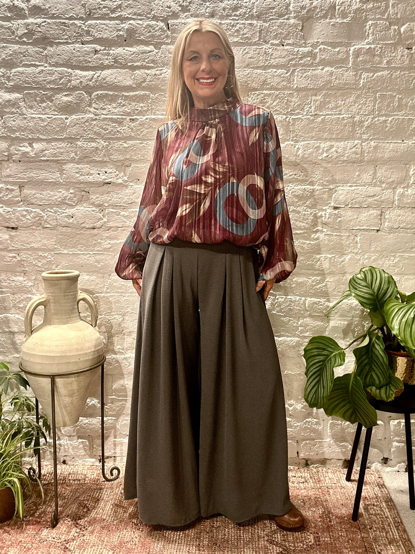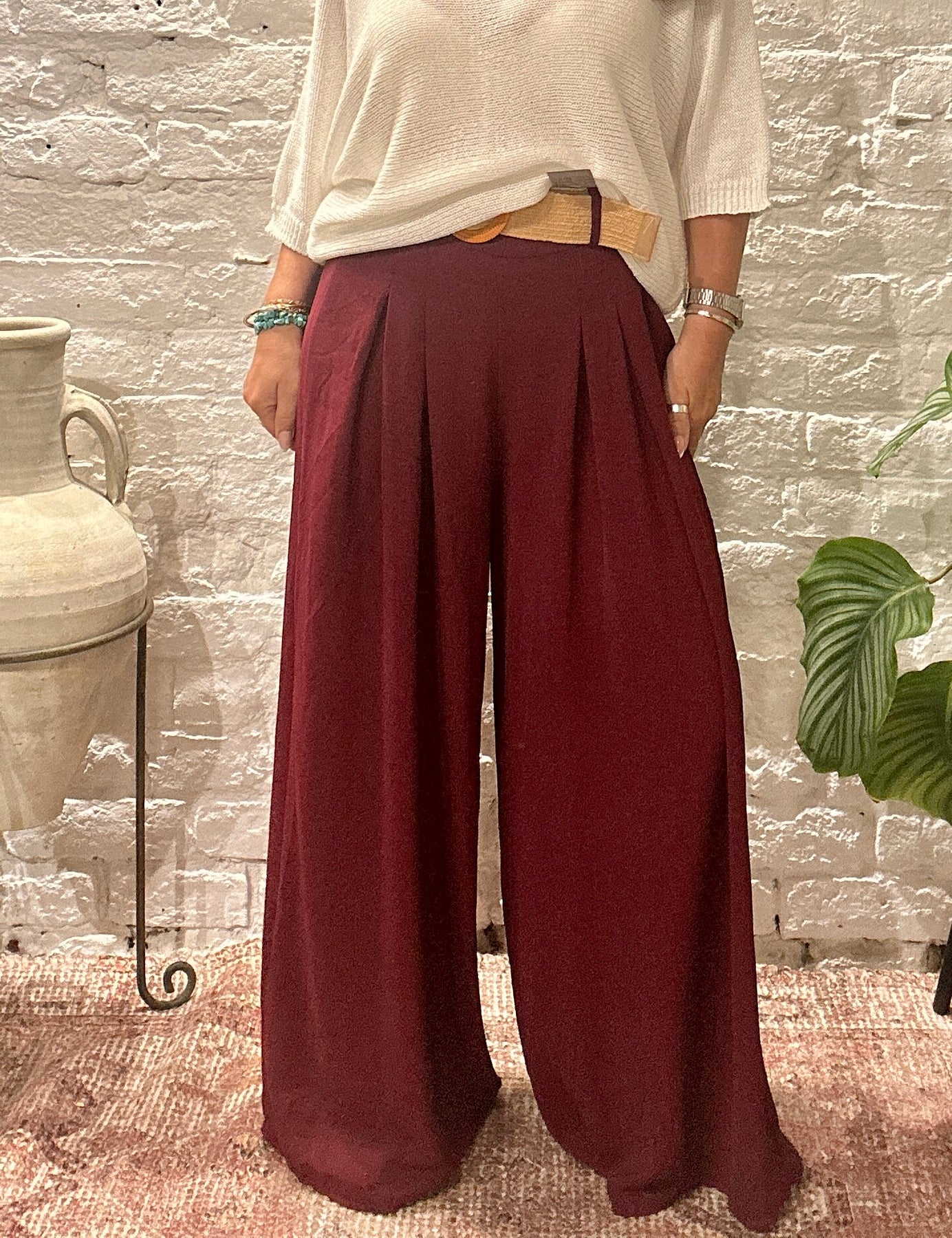 The Lucy Wide Leg Palazzo trouser comes with a fabulous stretch bel. Trousers are a  pinch front pleat detail