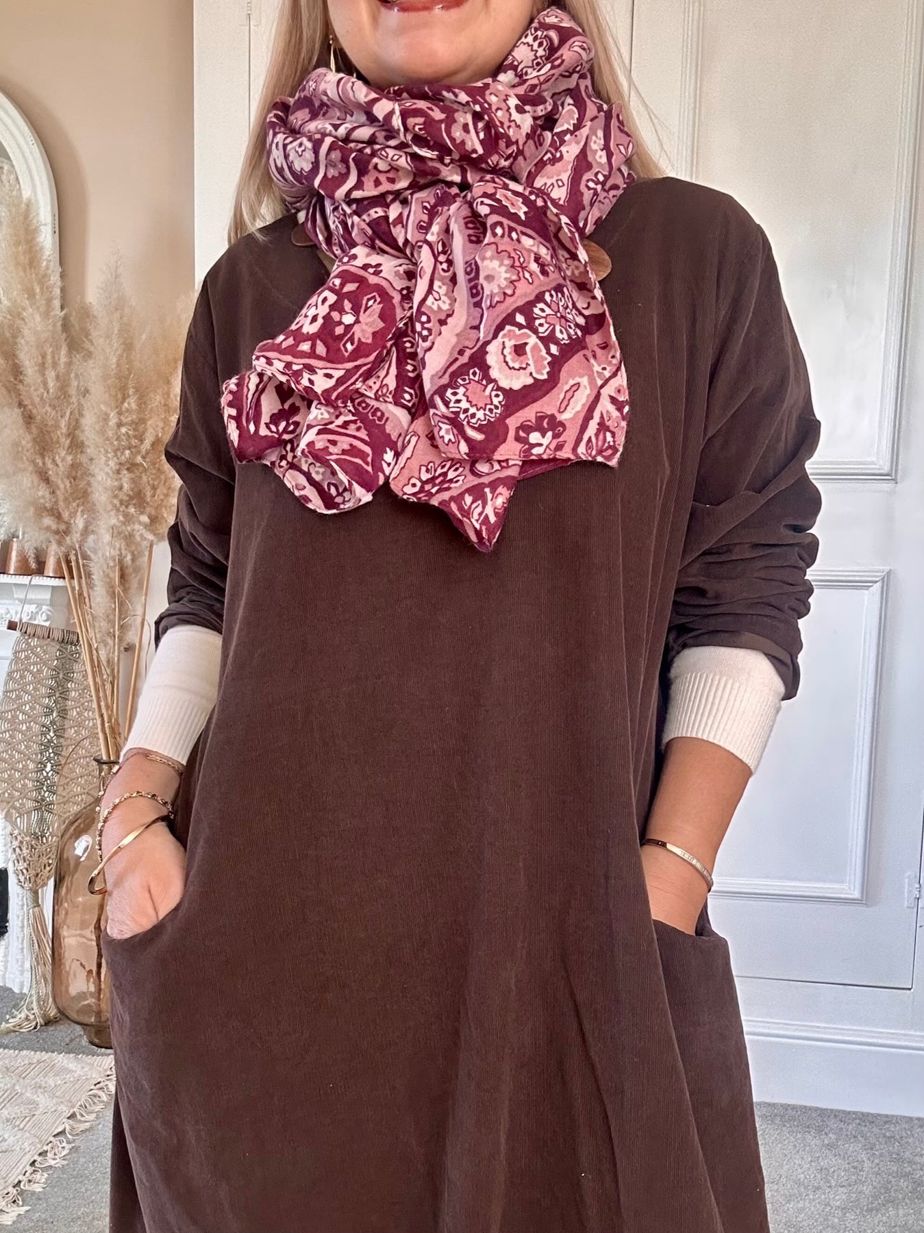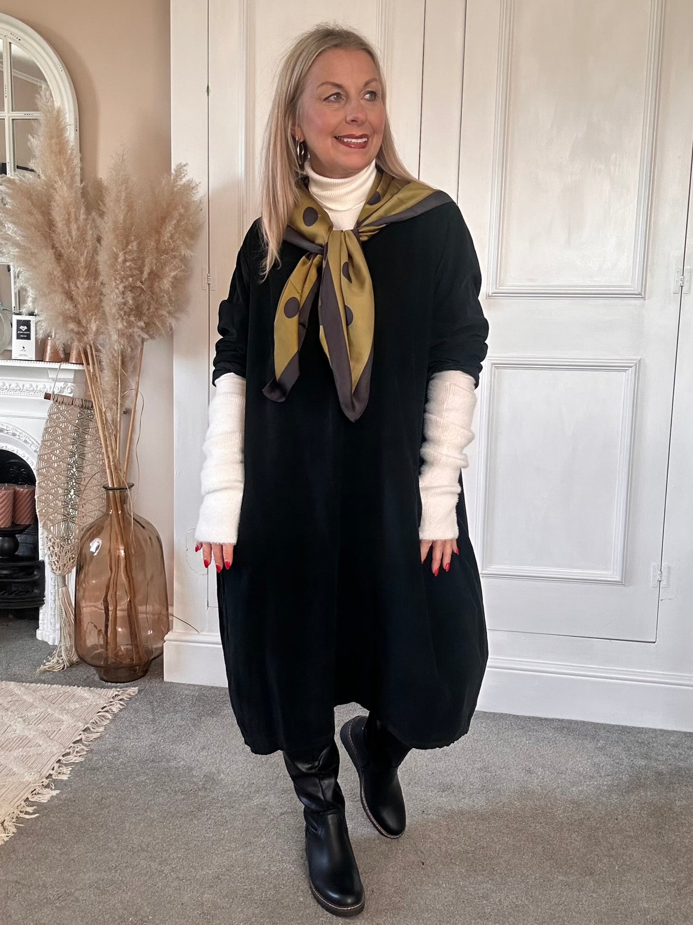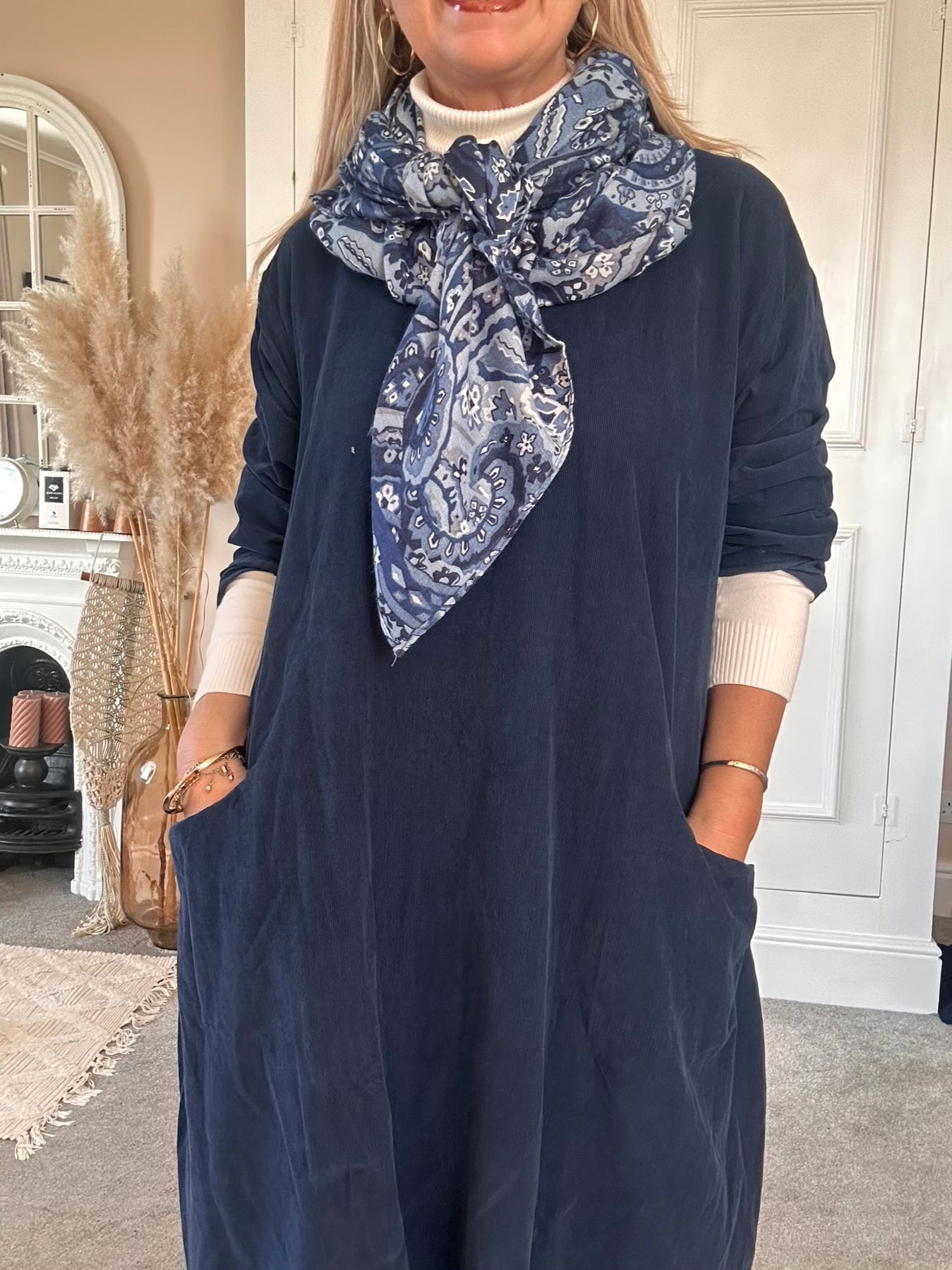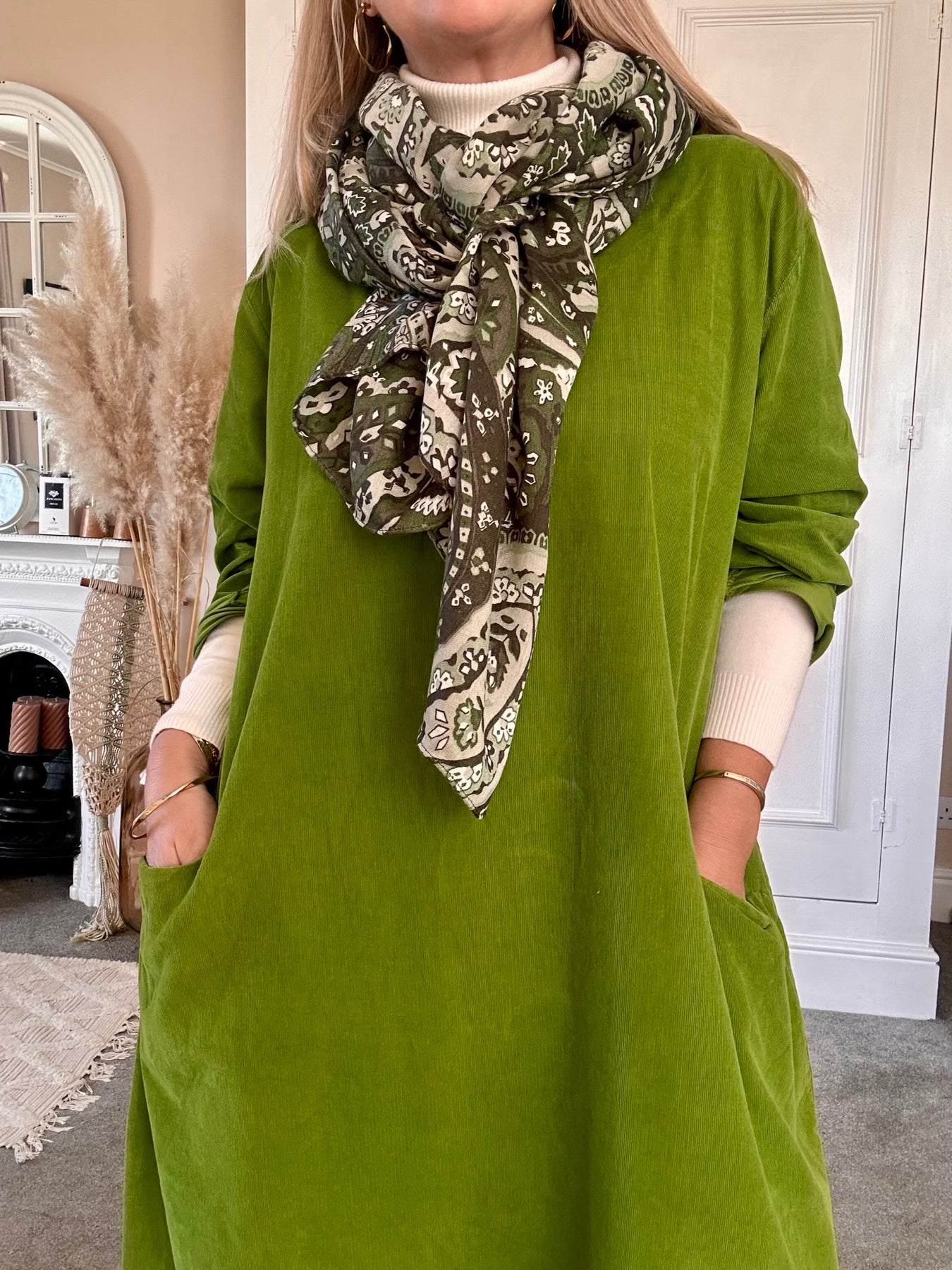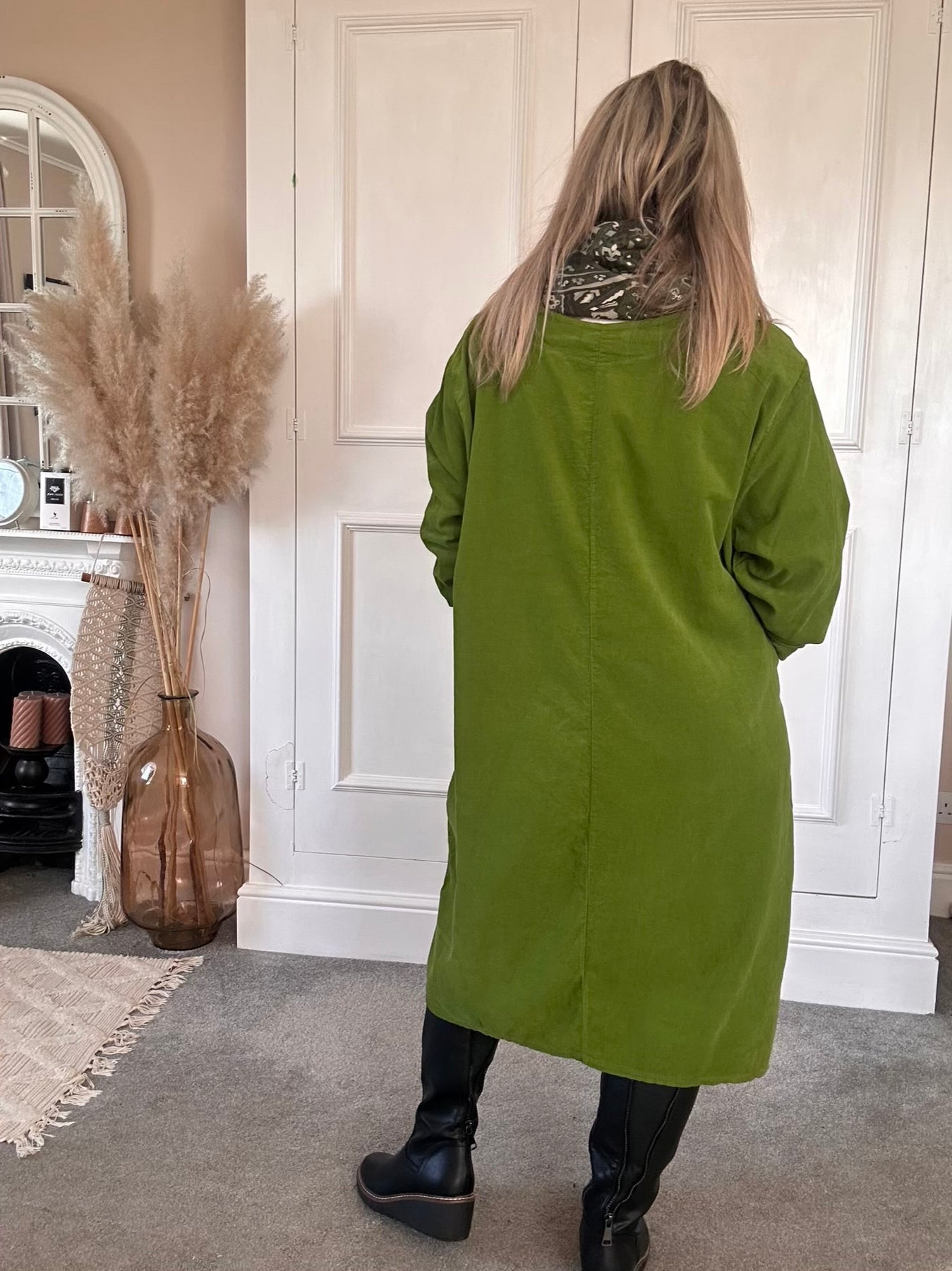 The Pincord Cordroy Willow Relaxed Dress. A beautifully relaxed silhouette crafted in soft pin cord, this lagenlook-style dress blends effortless comfort with understated style. Featuring gentle shaping through the body, deep pockets, and a flowing drape that layers perfectly over lightweight tops or rollnecks, it’s a piece made for easy, everyday wear. Finished with subtle texture and a tactile cord feel, it brings warmth and character to your autumn wardrobe.
