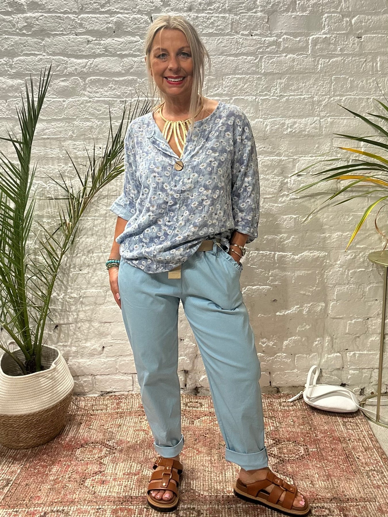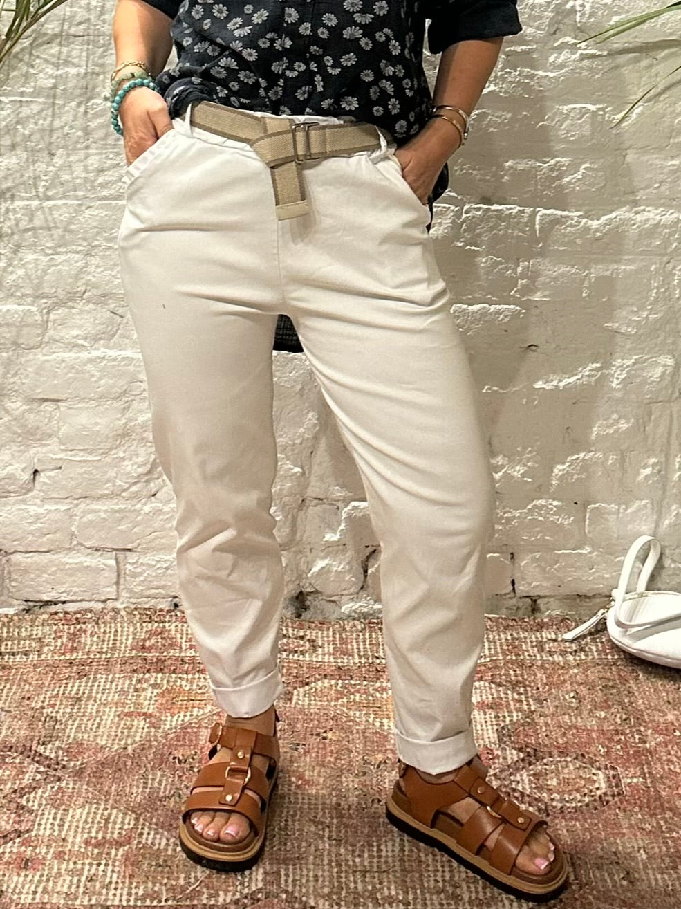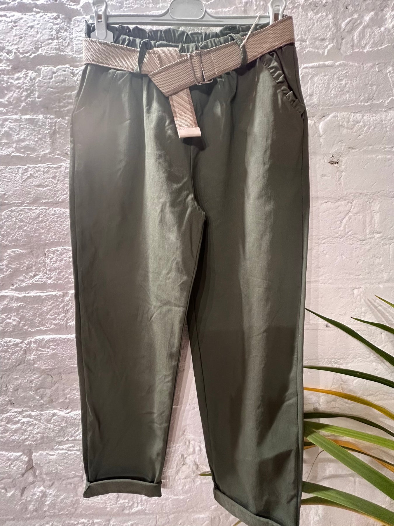 The Stretch Demi Magic Pant Trouser Barrel style With Tapered Leg comes with Belt