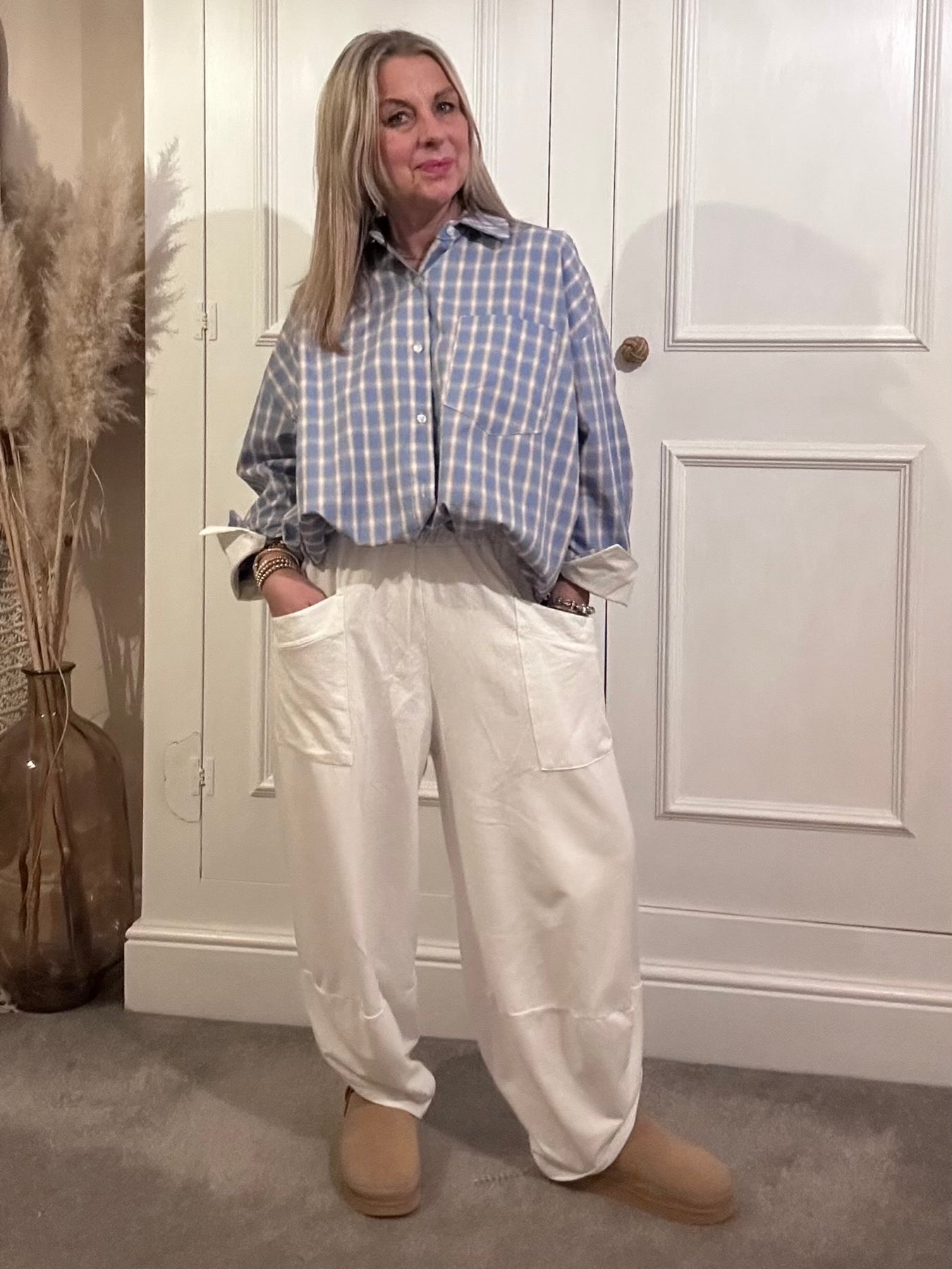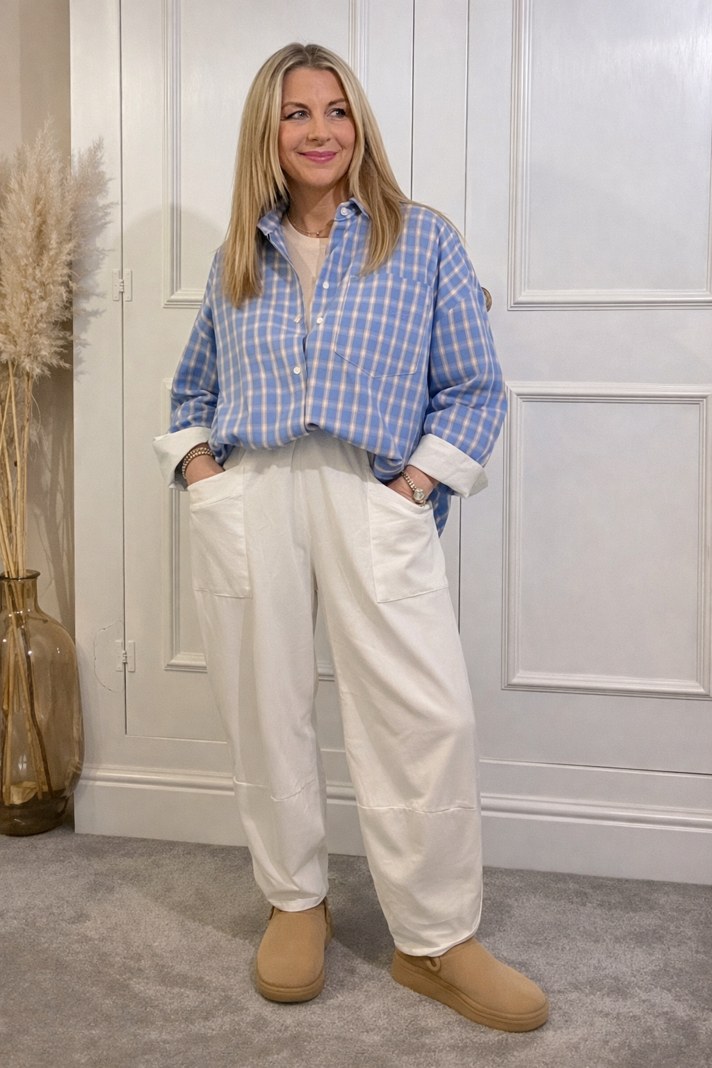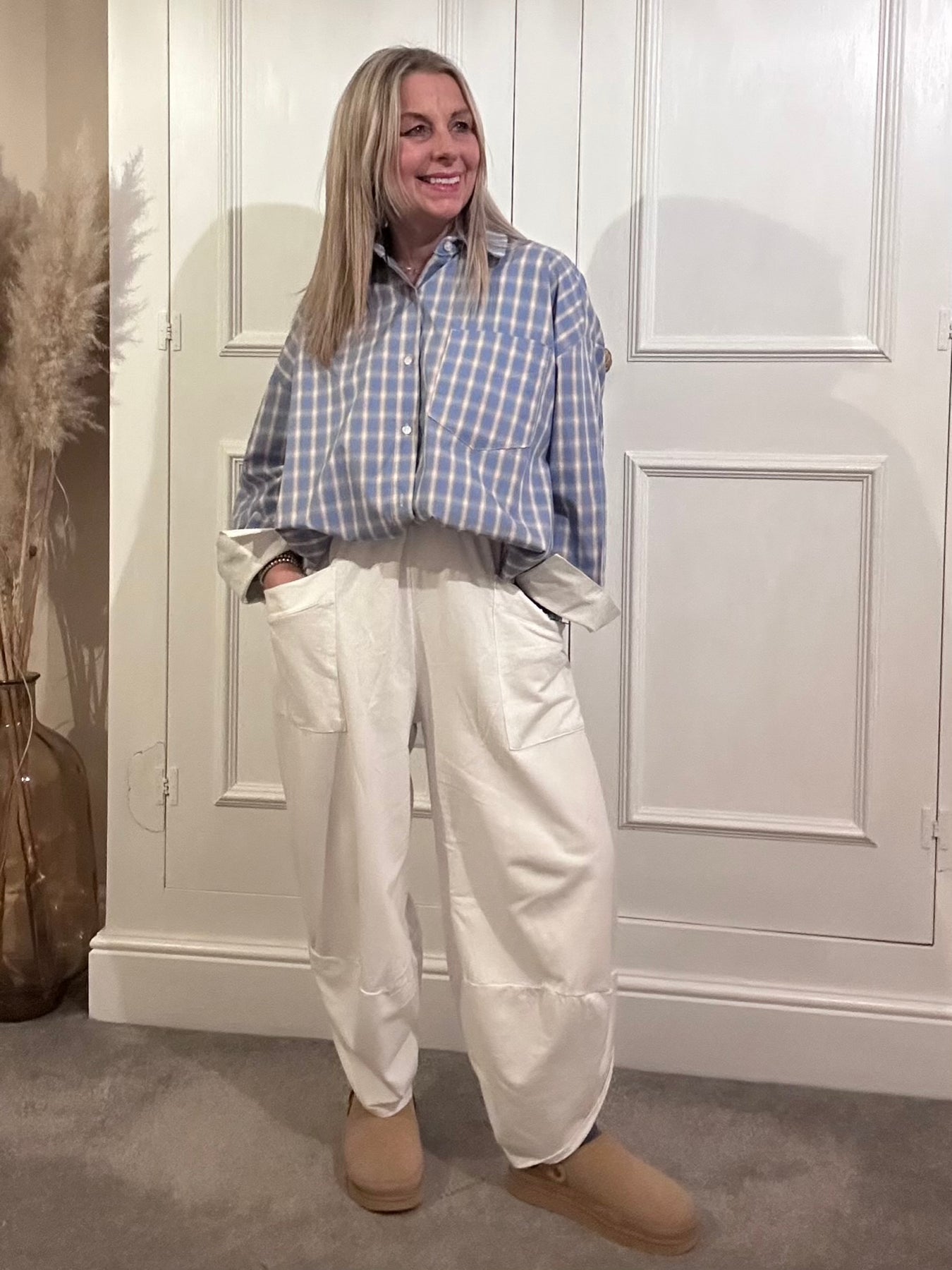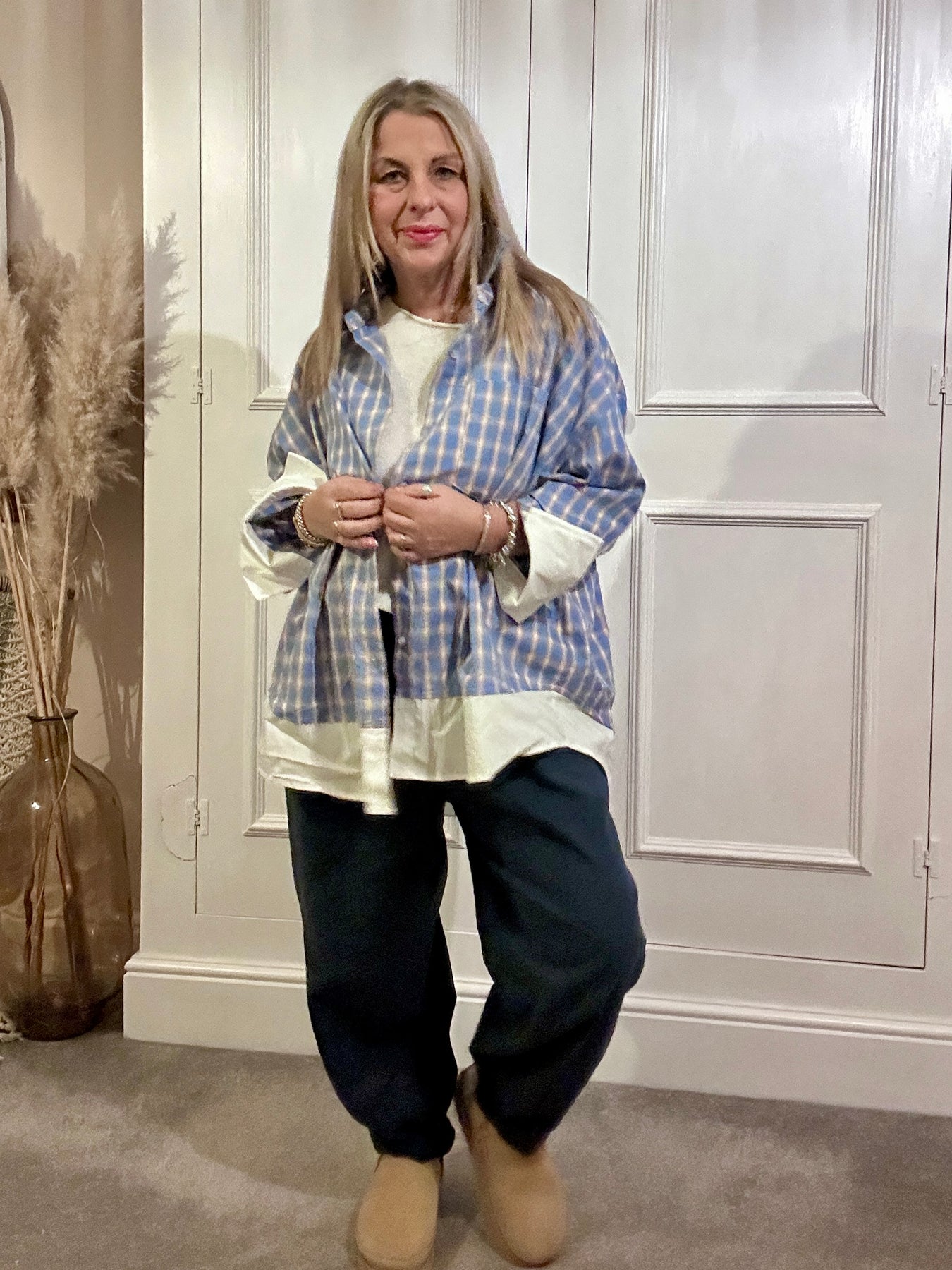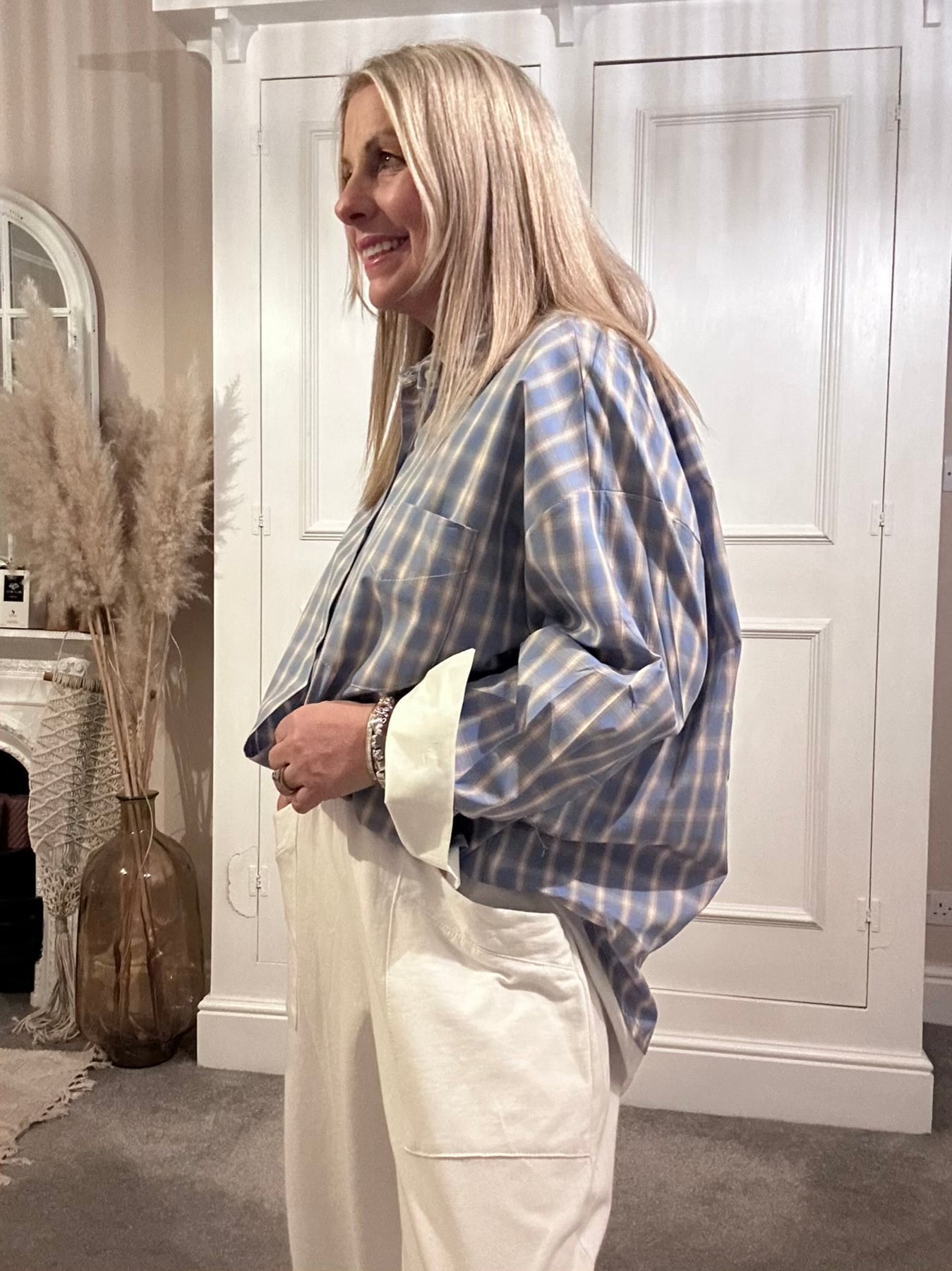 Zeta Otto White Tail Blue Check Button Through Shirt.  Long sleeve